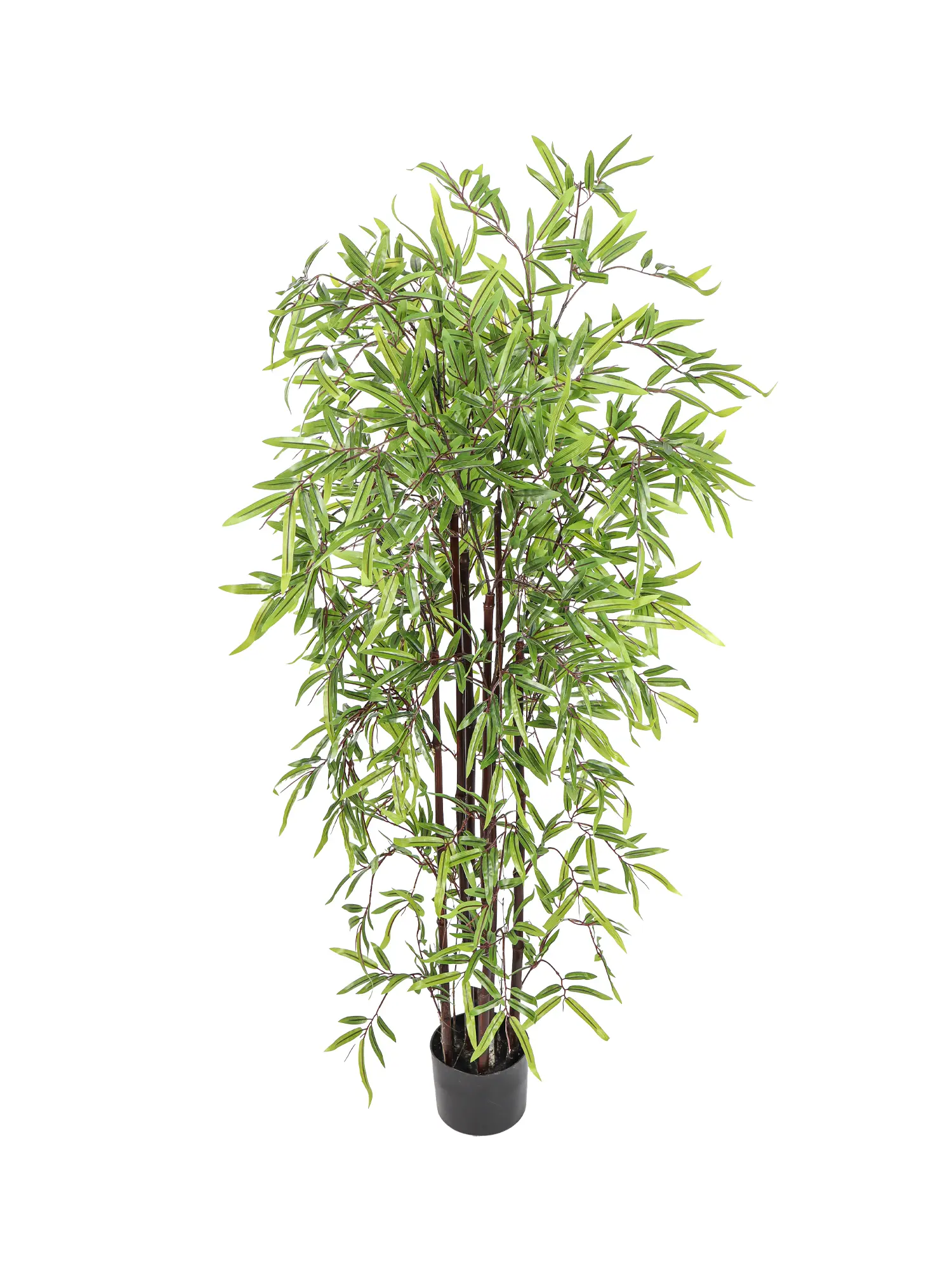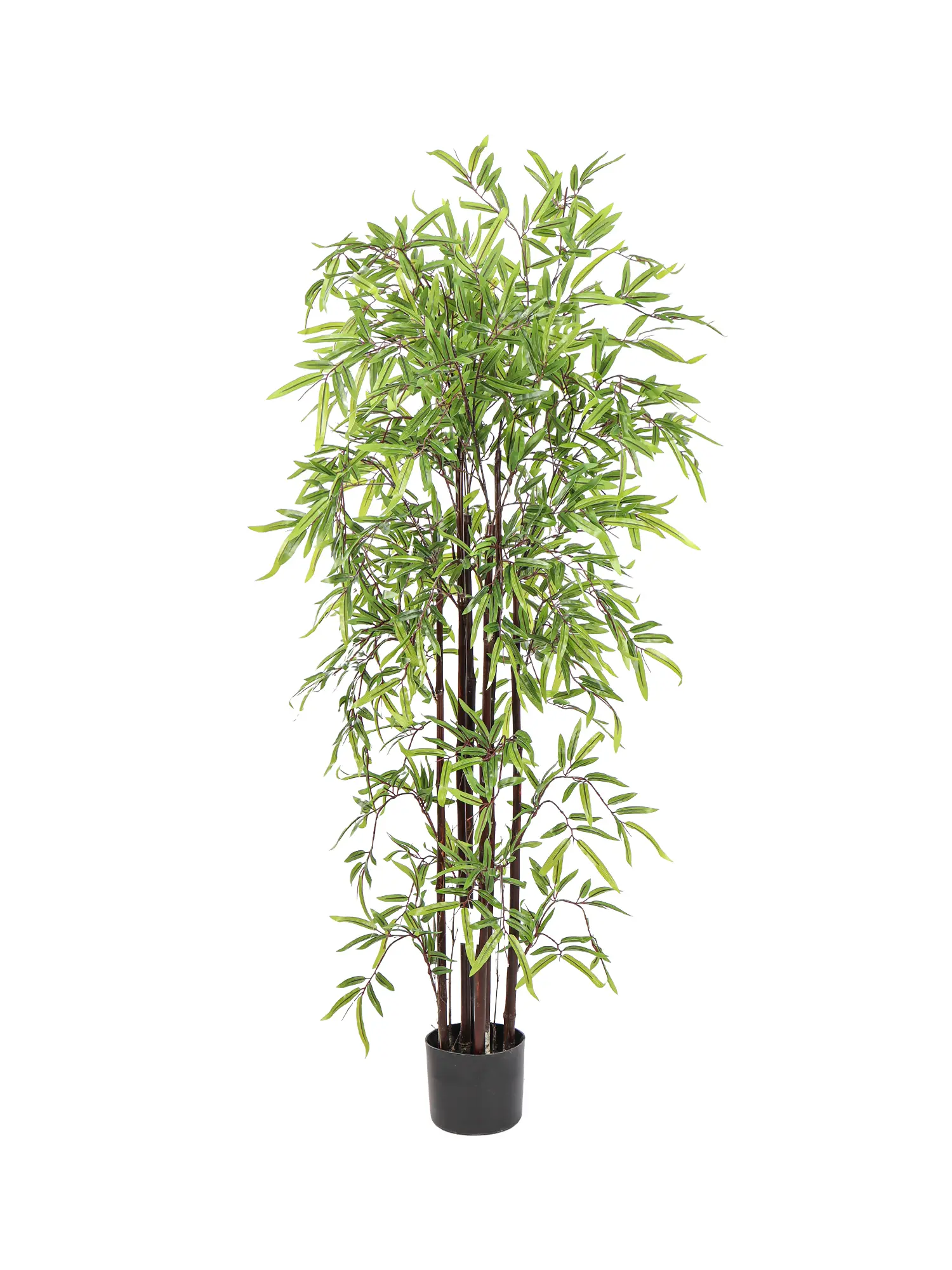 Deze kunstbamboeplanten zijn gemaakt van hoogwaardige materialen en heeft flexibele takken die eenvoudig te vormen zijn. De zes donkere bamboestammen staan stevig in een 13 cm hoge pot. Dankzij de zorgvuldige afwerking blijven de bladeren stevig vastzitten en behouden ze hun natuurlijke uitstraling.