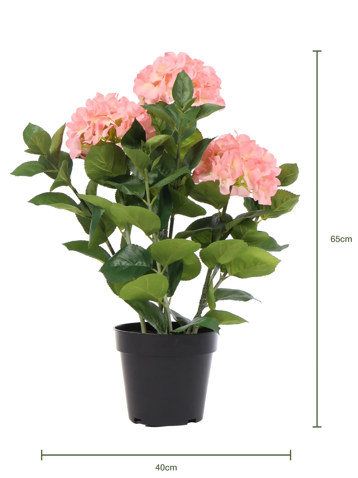 Deze Grote Kunst Hortensia Roze 65cm is een bijzonder natuurgetrouwe kunst bloemplant.