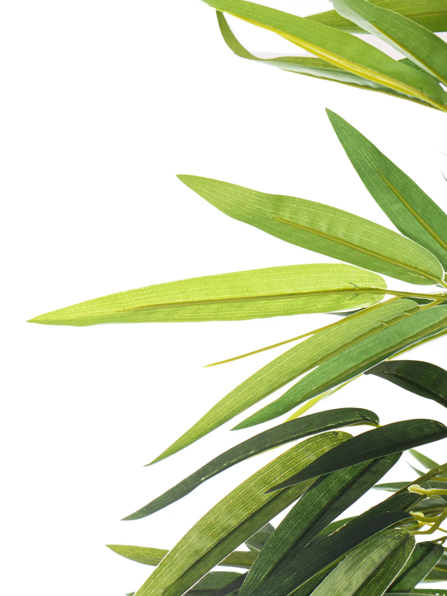 De stammen zijn goed gevuld met veel bamboescheuten en een zeer groot aantal groene bamboe kunstbladeren.