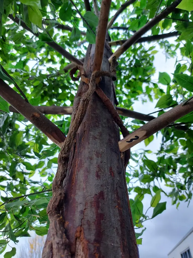 De dikke stam is een natuurlijk product en heeft een flinke diameter tot wel zo’n 12cm.