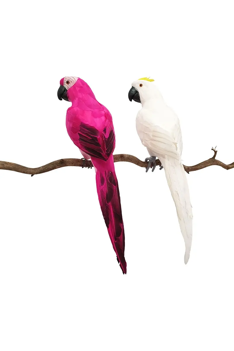 Behalve in deze bekende witte kleur bieden we de neppapagaaien ook nog in andere kleuren aan.