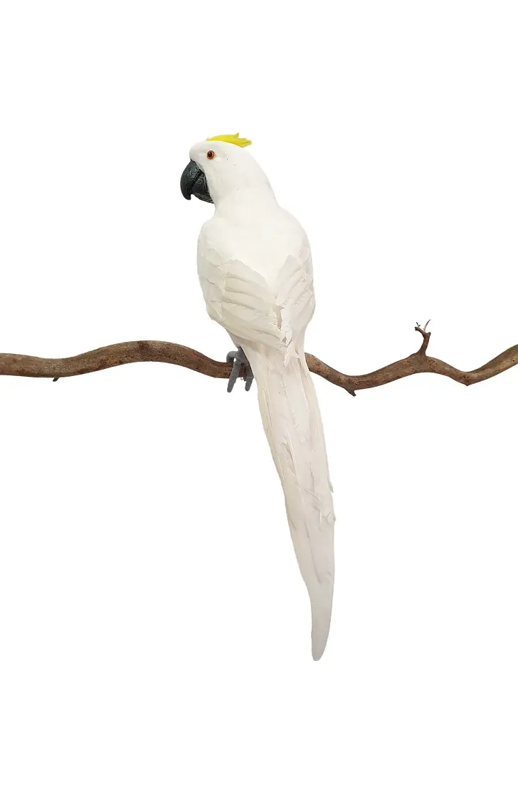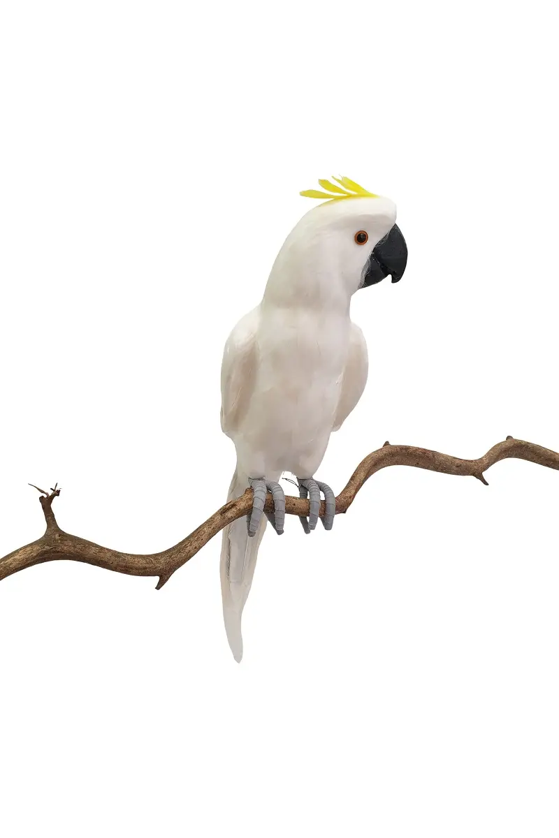 De nep kaketoe is levensecht. Zowel in formaat als in uiterlijk.