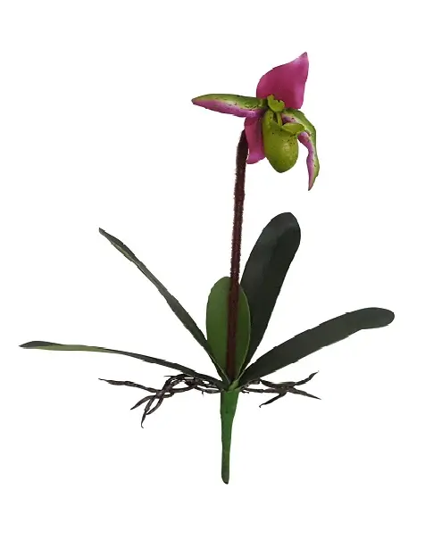 Onderaan de stengel is de namaak orchidee voorzien 5 dekbladeren en namaak wortels.