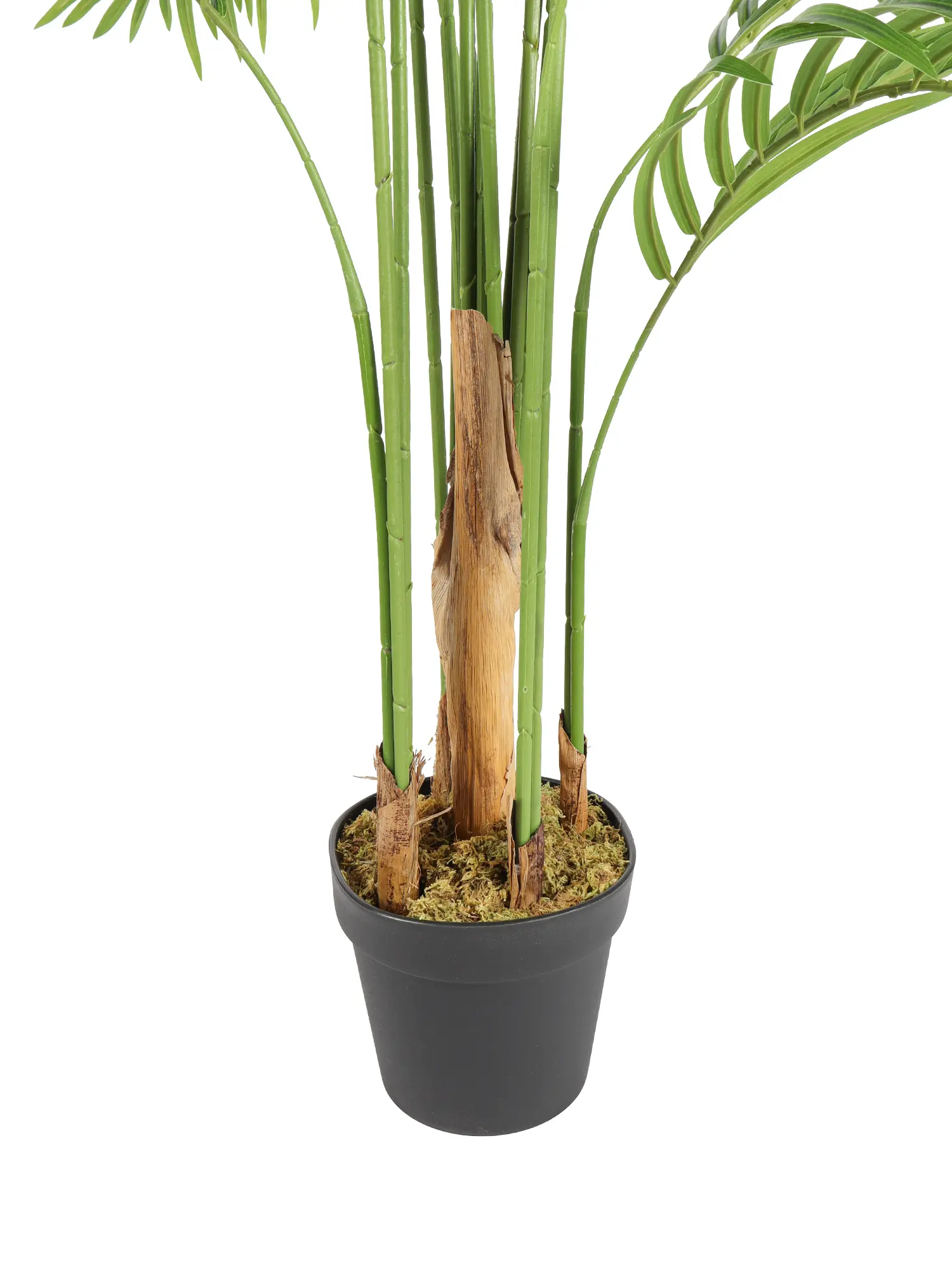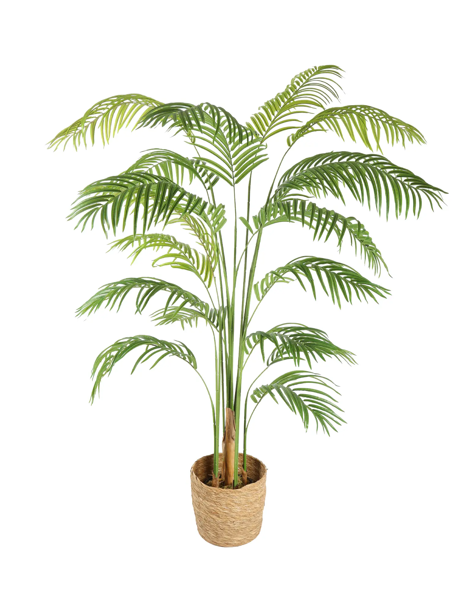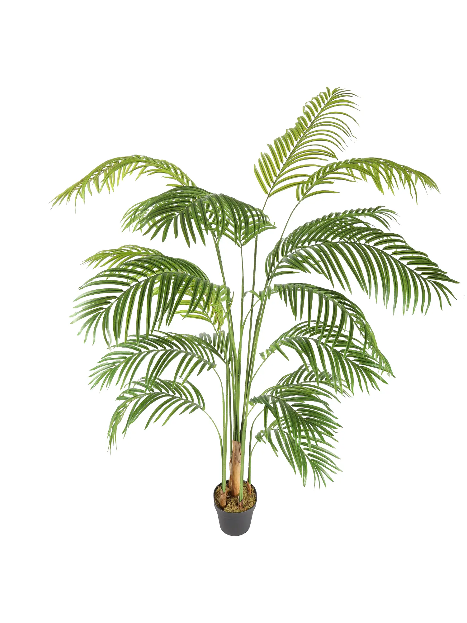 De bladeren vorme samen een prachtig gelaagde kroon die de karakteristieke Arecapalm-uitstraling perfect nabootst. Dankzij de buigzame metaaldraad in blad en stengel kun je de palm eenvoudig modelleren voor een persoonlijk effect. Een lichte beweging van de bladeren bij tocht of ventilatie zorgt voor een subtiel levendig resultaat. Ideaal voor wie zoekt naar een onderhoudsvrij, duurzaam en stijlvol alternatief voor een echte palmboom.