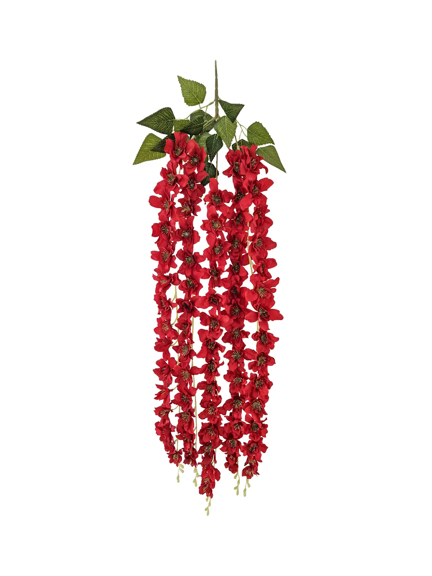 De kunstbloem hangplant bestaat uit een centrale stengel met daaraan vijf stuks losse stengels vol bloemen.