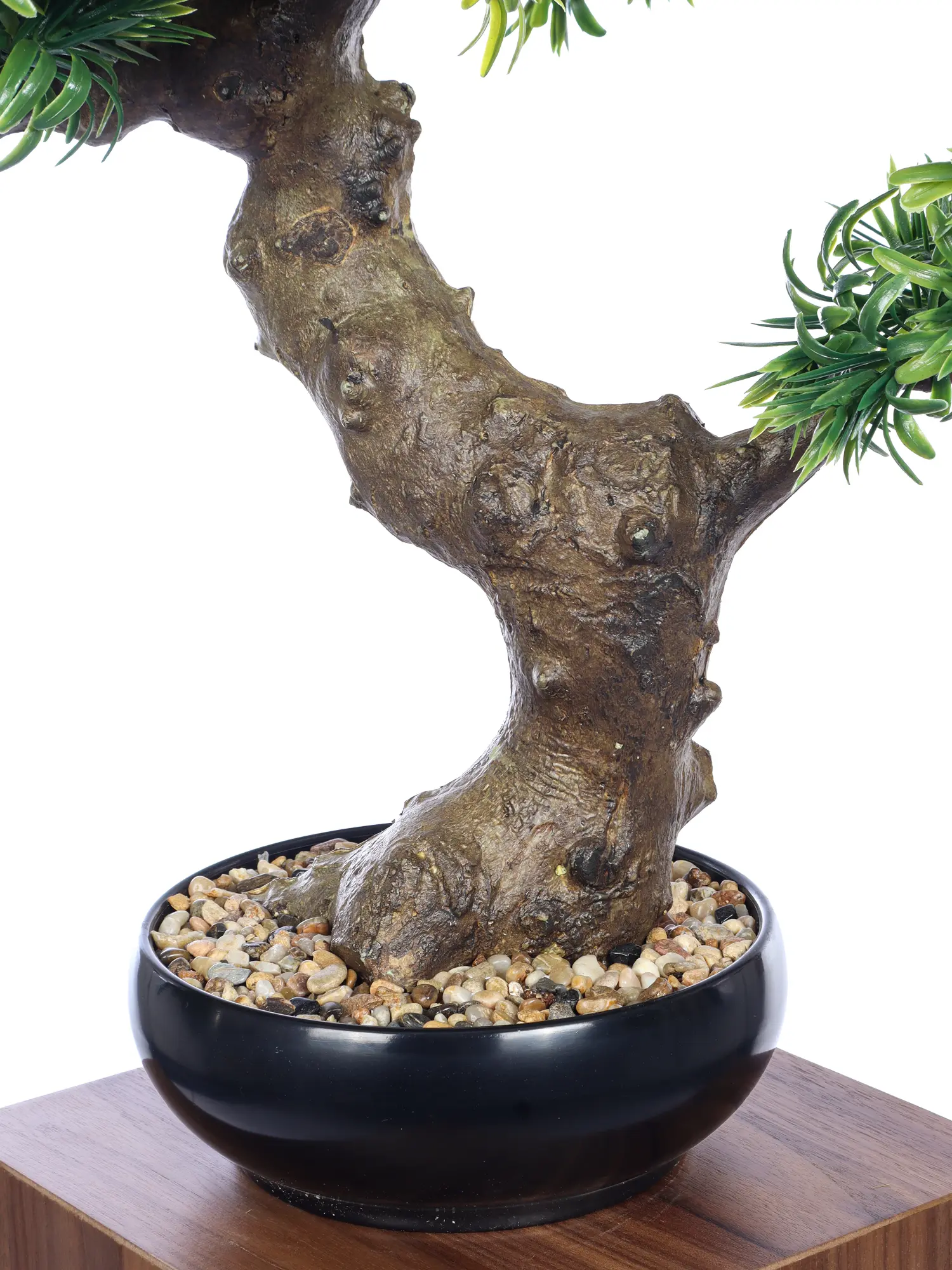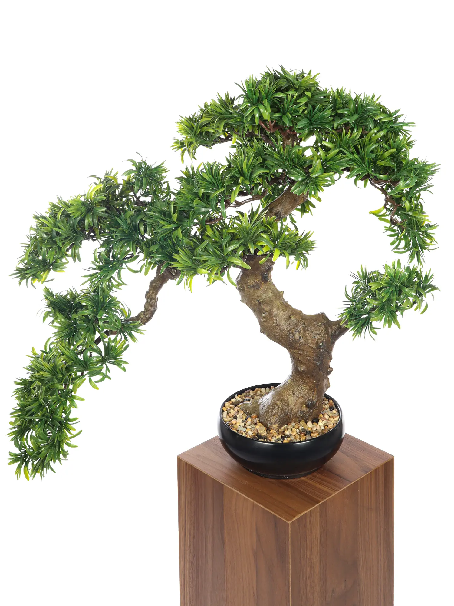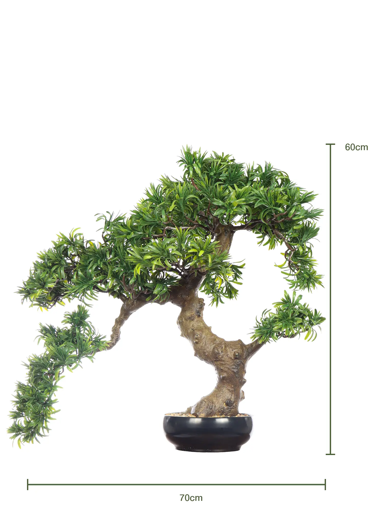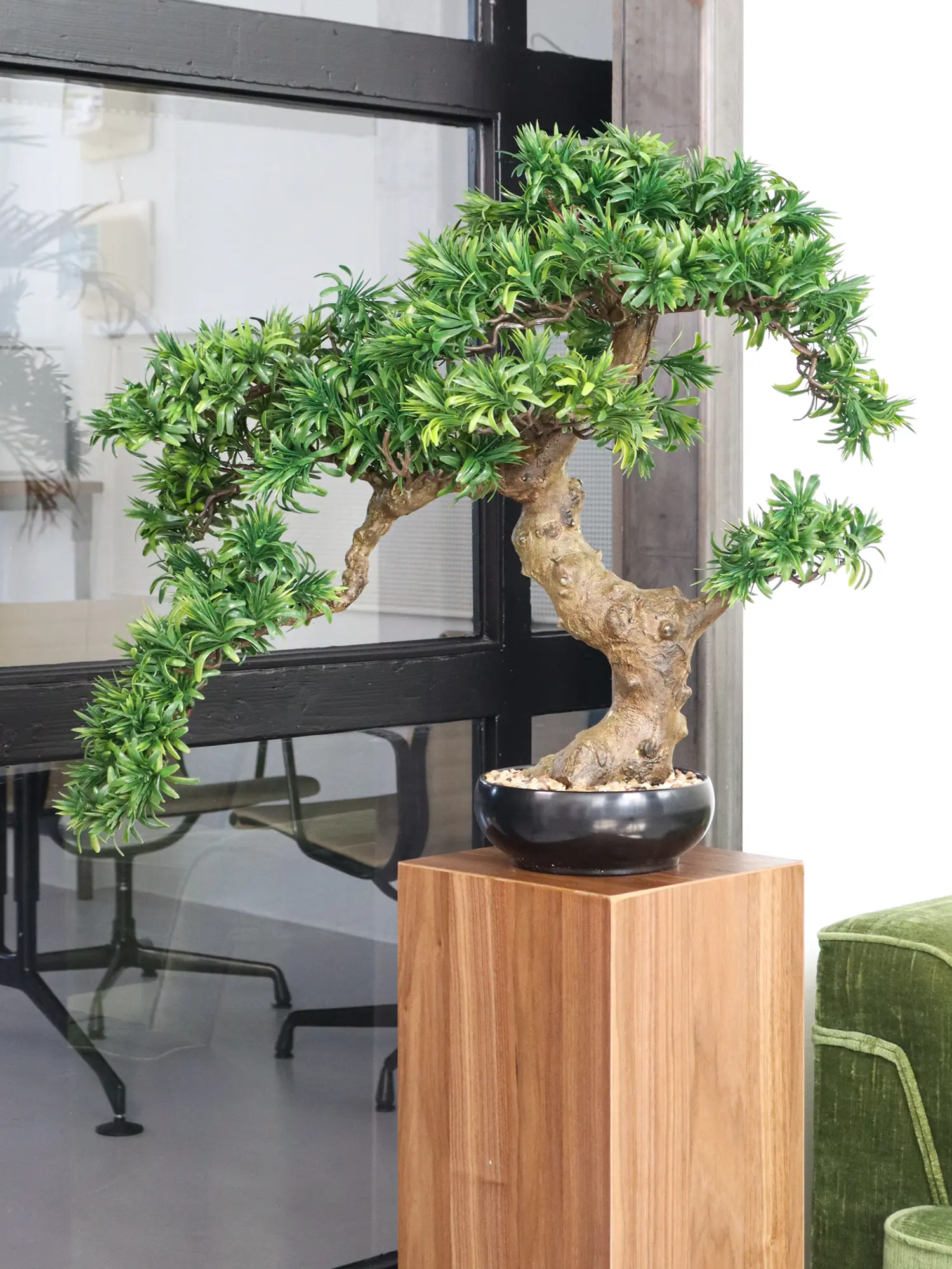 Deze kunstbonsai is een groot formaat kunstboom die nauwelijks van een echte bonsaiboom te onderscheiden is. Zowel de vorm als de afwerking zijn zeer natuurgetrouw en doen denken aan een zorgvuldig gesnoeide echte bonsai.