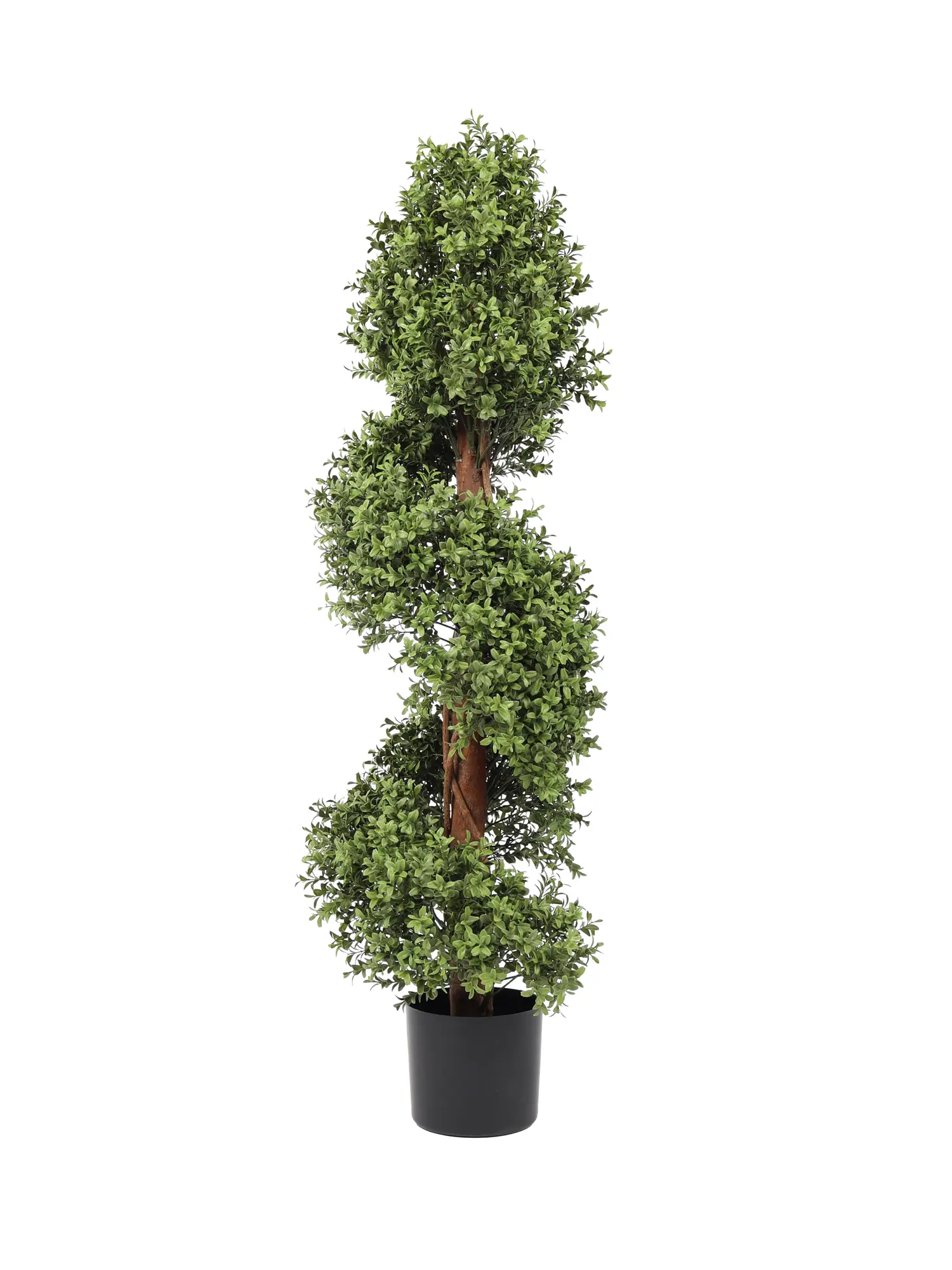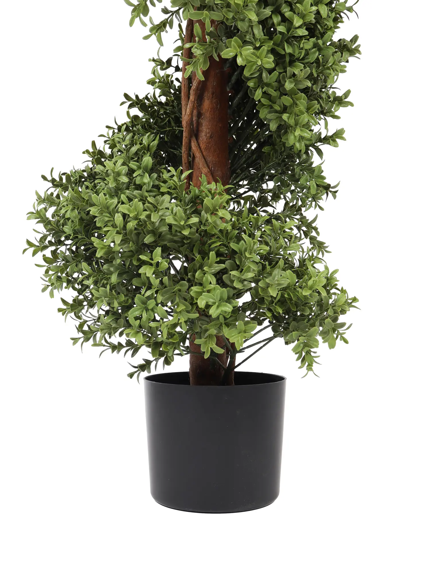 De Kunst Buxus Spiraal 125cm staat stabiel in de stevige zwarte pot.