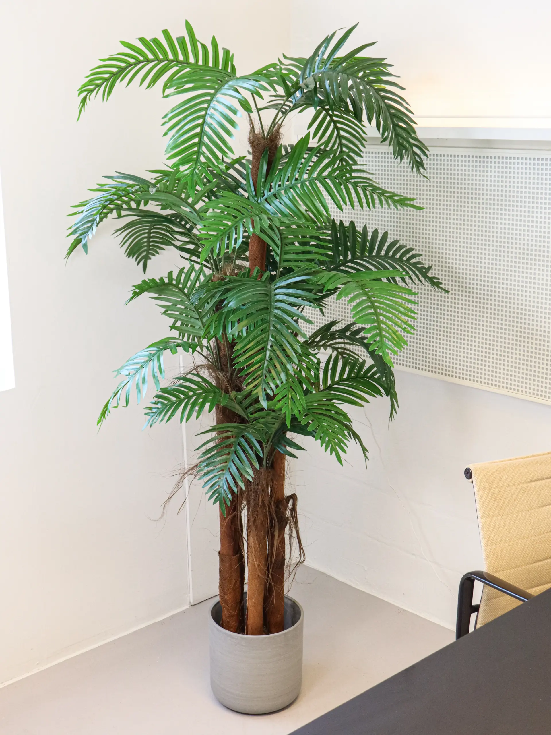 De Kunst Kokospalm Bermuda 180cm is een indrukwekkende 180cm hoge kunstpalmboom die direct een tropische sfeer creëert in elke ruimte. Dit model behoort tot de Bermuda-serie, waarvan deze variant de hoogste is. Met maar liefst vijf dikke kokosvezelstammen van verschillende hoogtes en 33 stuks realistische palmbladeren, is deze kunstpalm een echte blikvanger.