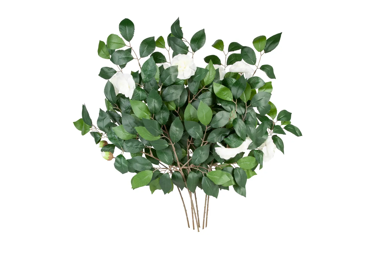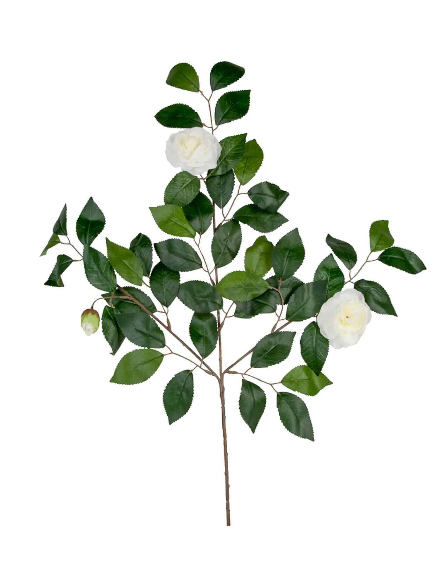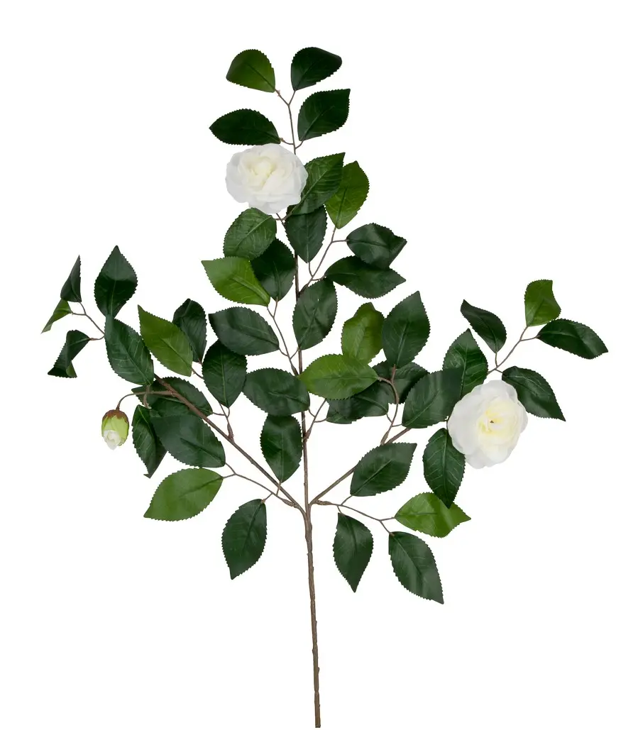 Kunst Rozentak Wit 65cm is een mooie realistische kunsttak met twee grote witte kunstrozen en een kunstroos knop. Daarnaast is deze tak voorzien van heel veel zeer natuurlijke kustbladeren. Het geheel is goed vast gezet en van bijzonder natuurlijk kwaliteit.