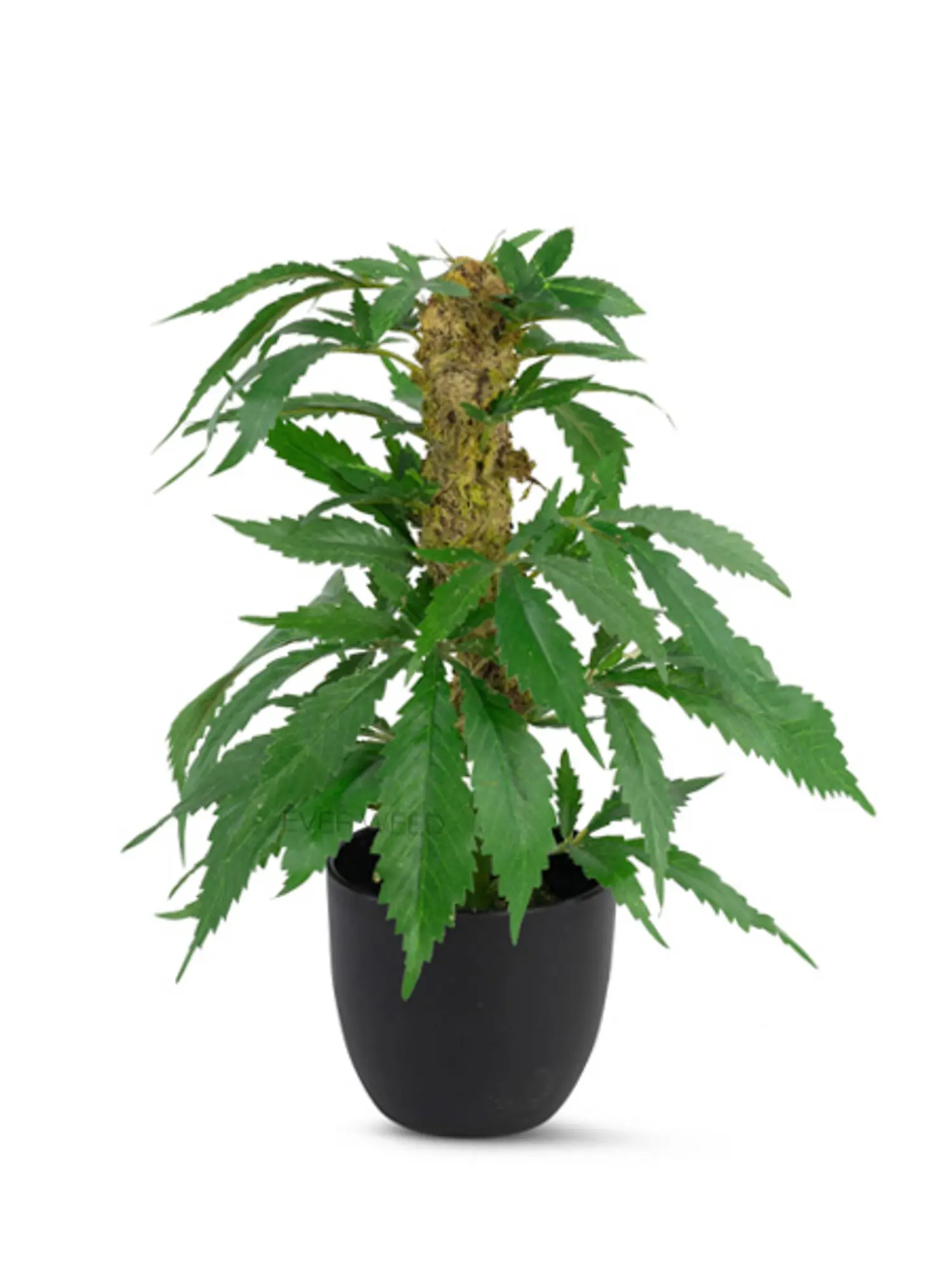 Ook deze kleine Kunst Wietplant Small met Top 30cm maakt onderdeel uit van een serie namaak hennepplanten.