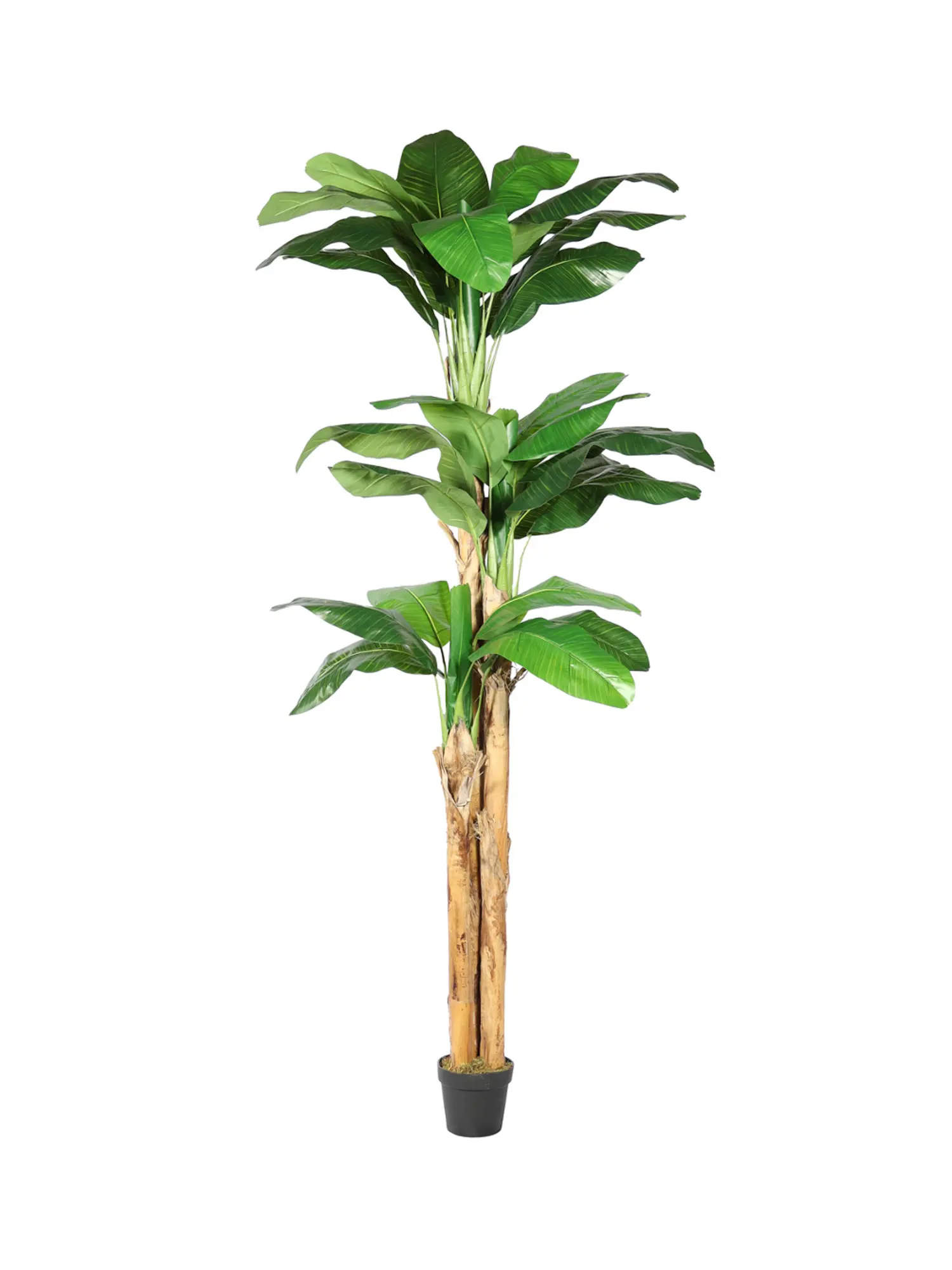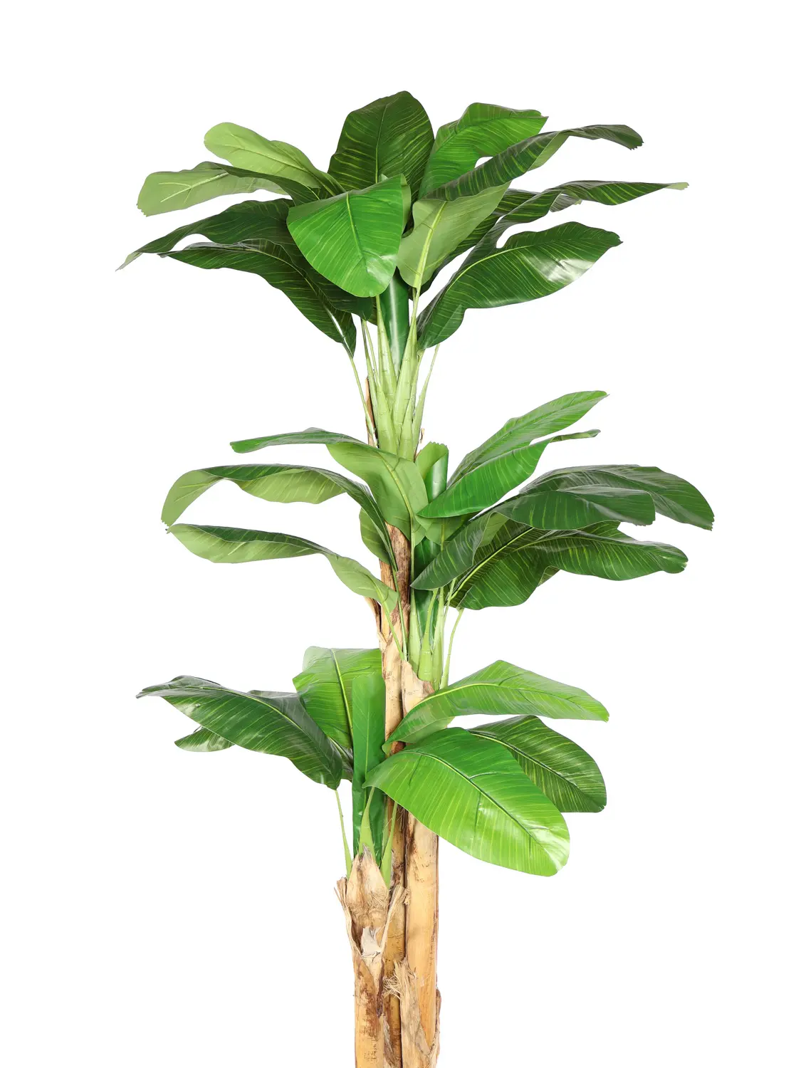 De Kunstbanaanboom Jamaica 260cm betreft een groot formaat namaak banaanboom met drie stammen.