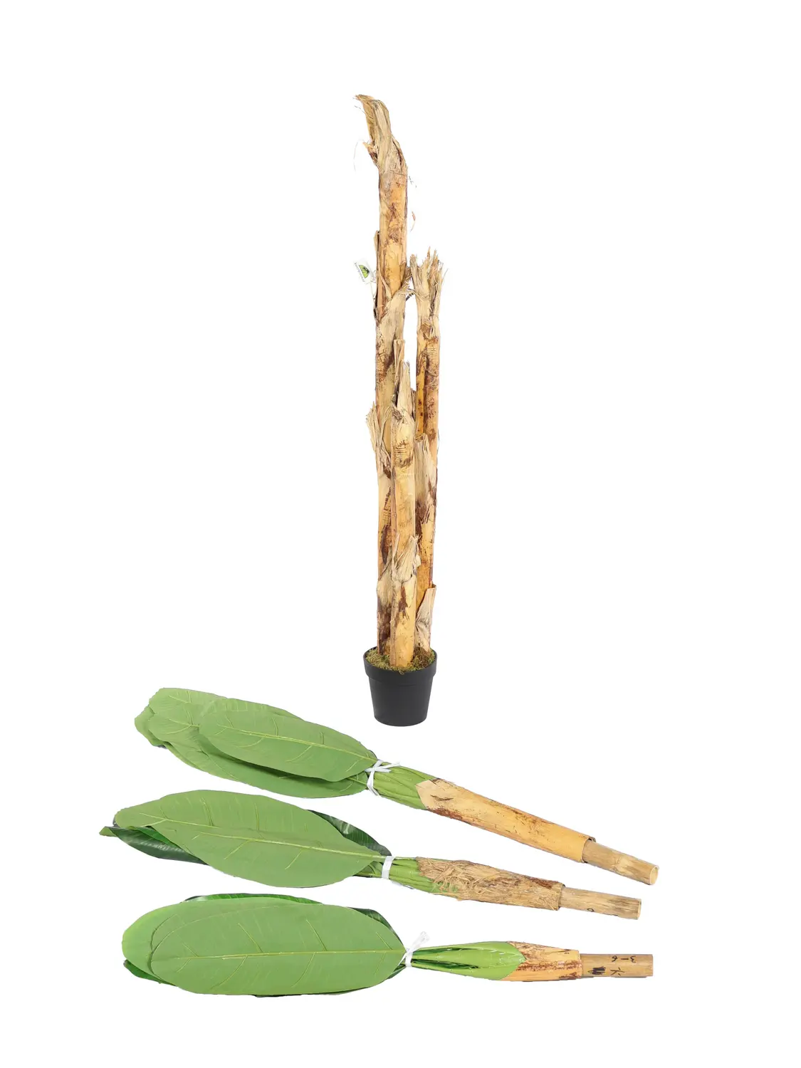 Omdat het een hoge kunstbananenboom betreft, is deze voorzien van drie lossen banaanblad kruinen.