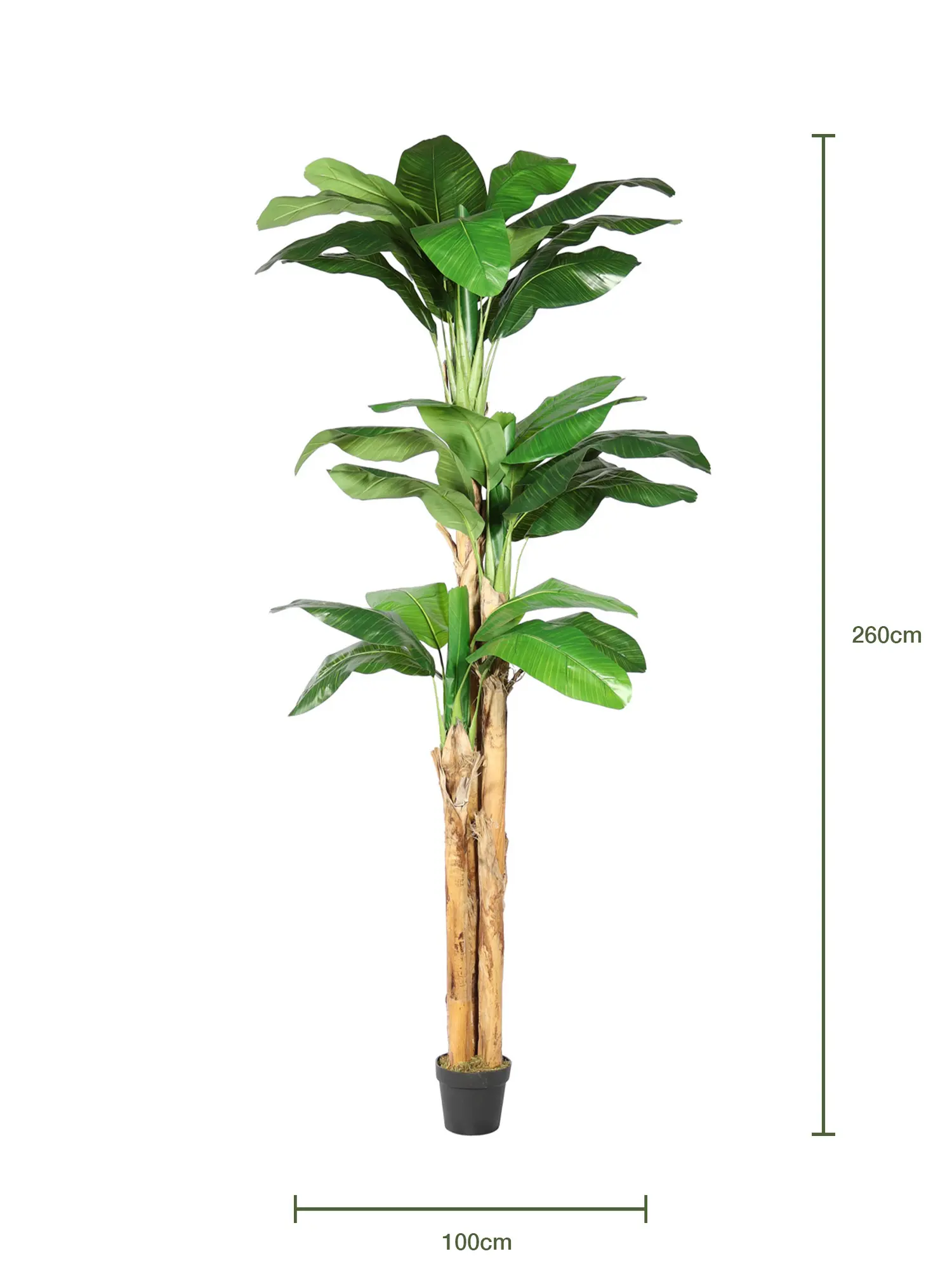 De totale hoogte van de Kunstbanaanboom Jamaica bedraagt tot bovenaan het blad wel 260cm
