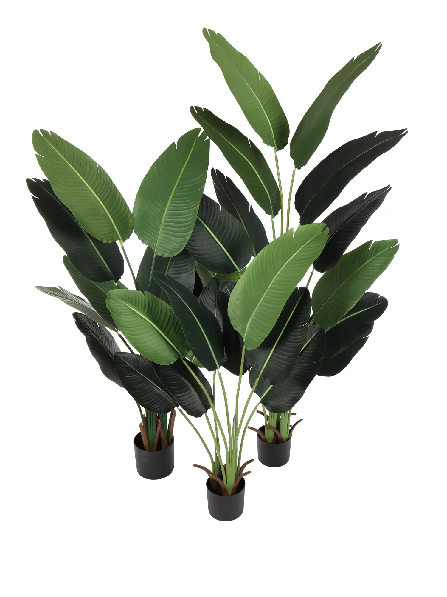 Zo zijn de kunstbladeren voorzien van kleine inkepingen zoals bij echte banaanbladeren ook het geval is.