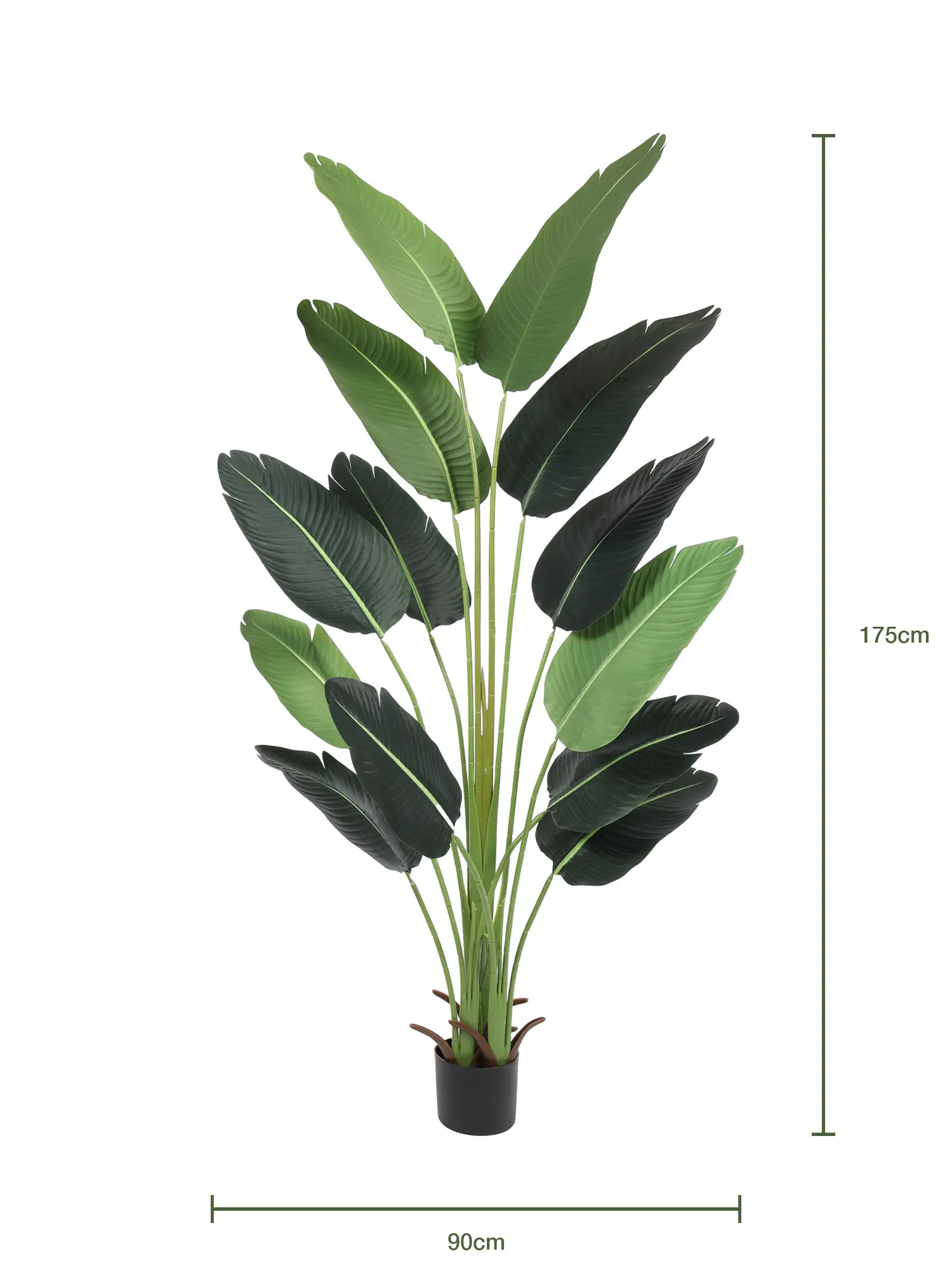 De Kunstbanaanplant Caracas 175cm is voorzien van grote en stevige groene banaanbladeren.