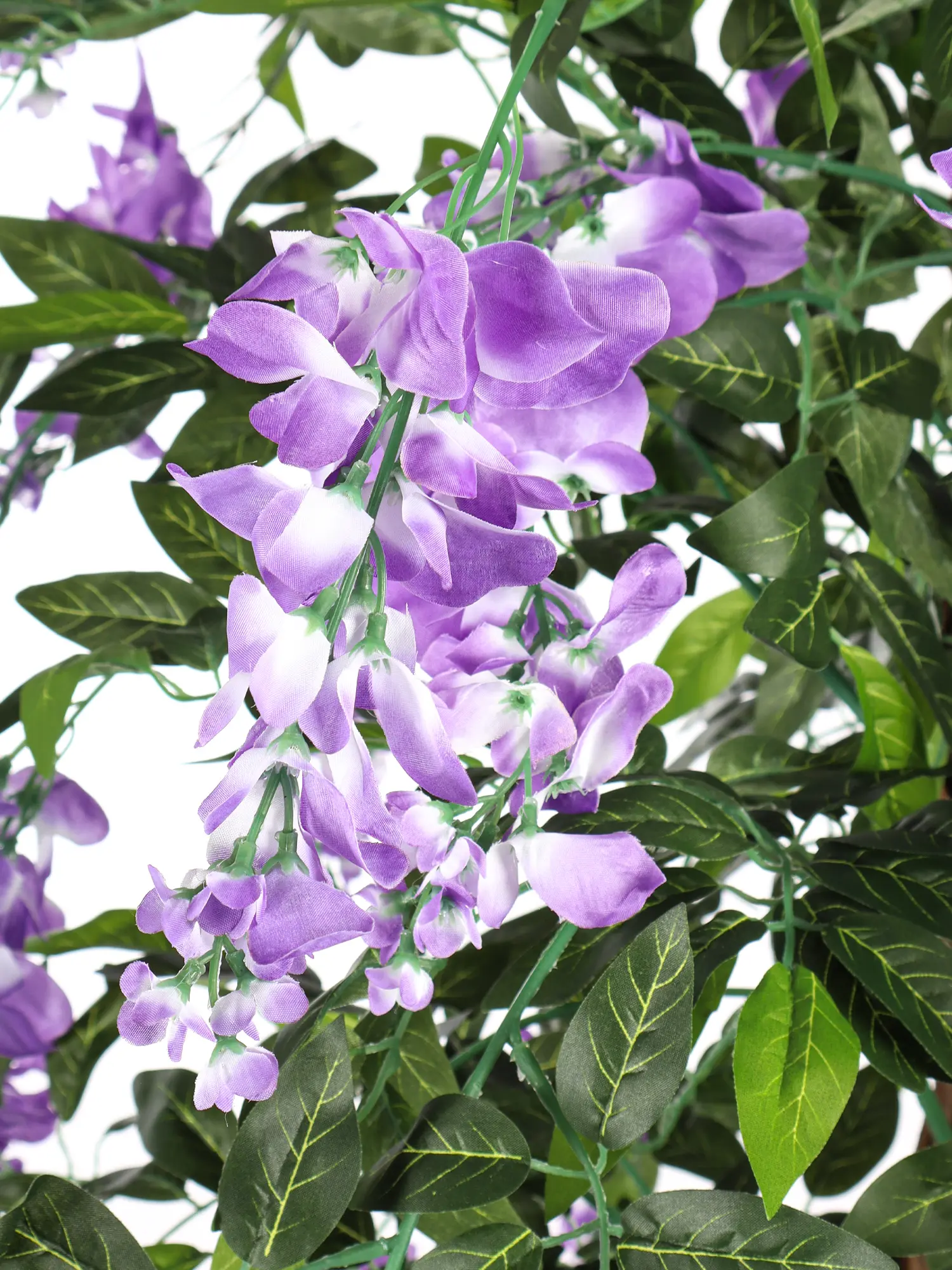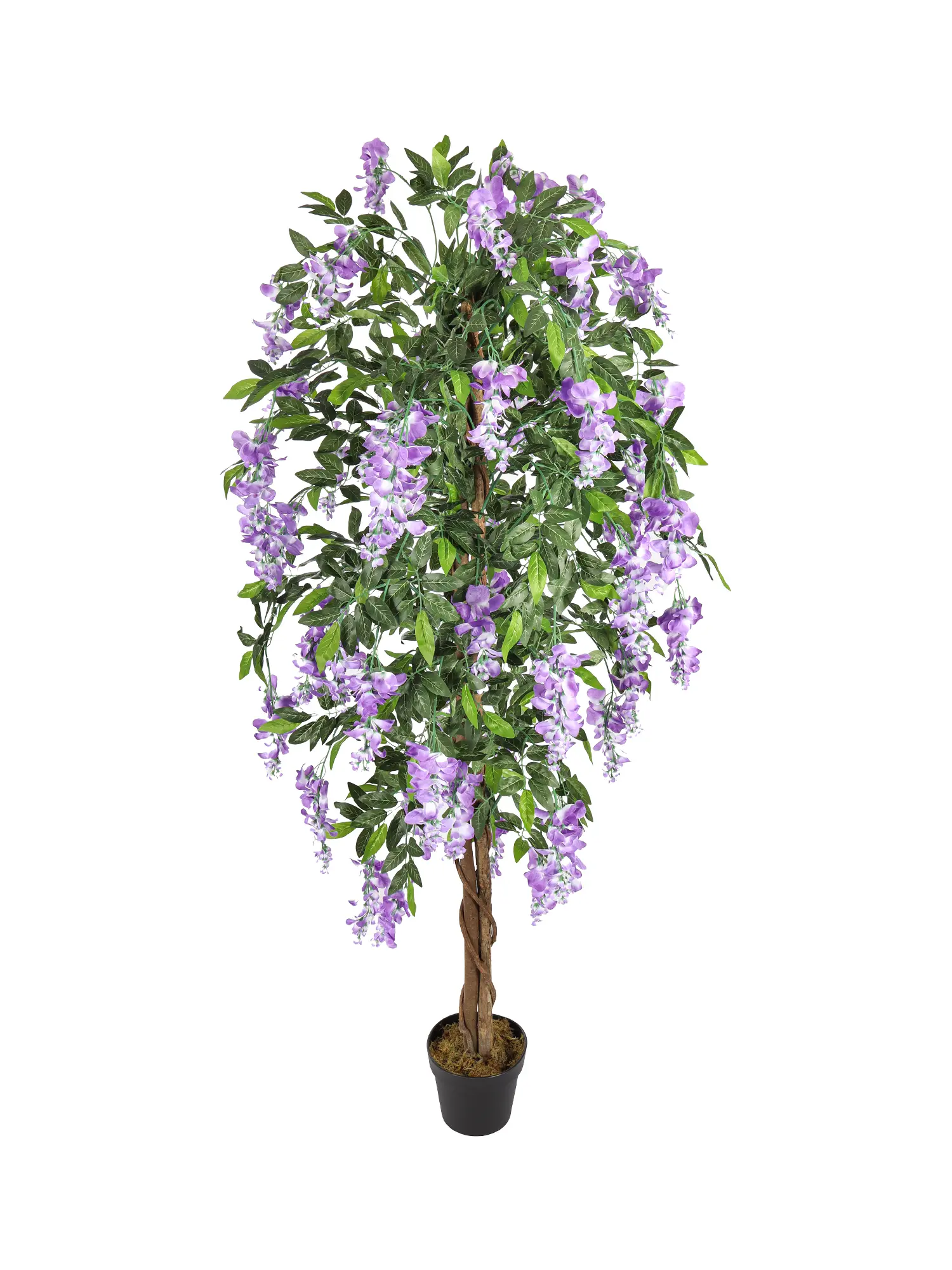 Deze grote kunstbloemboom is een echte blikvanger. Ze komt dan ook op veel plaatsen goed tot haar recht. We zien de Wisteria-kunstbomen dan ook terug in zowel privégebruik als zakelijke toepassingen.
