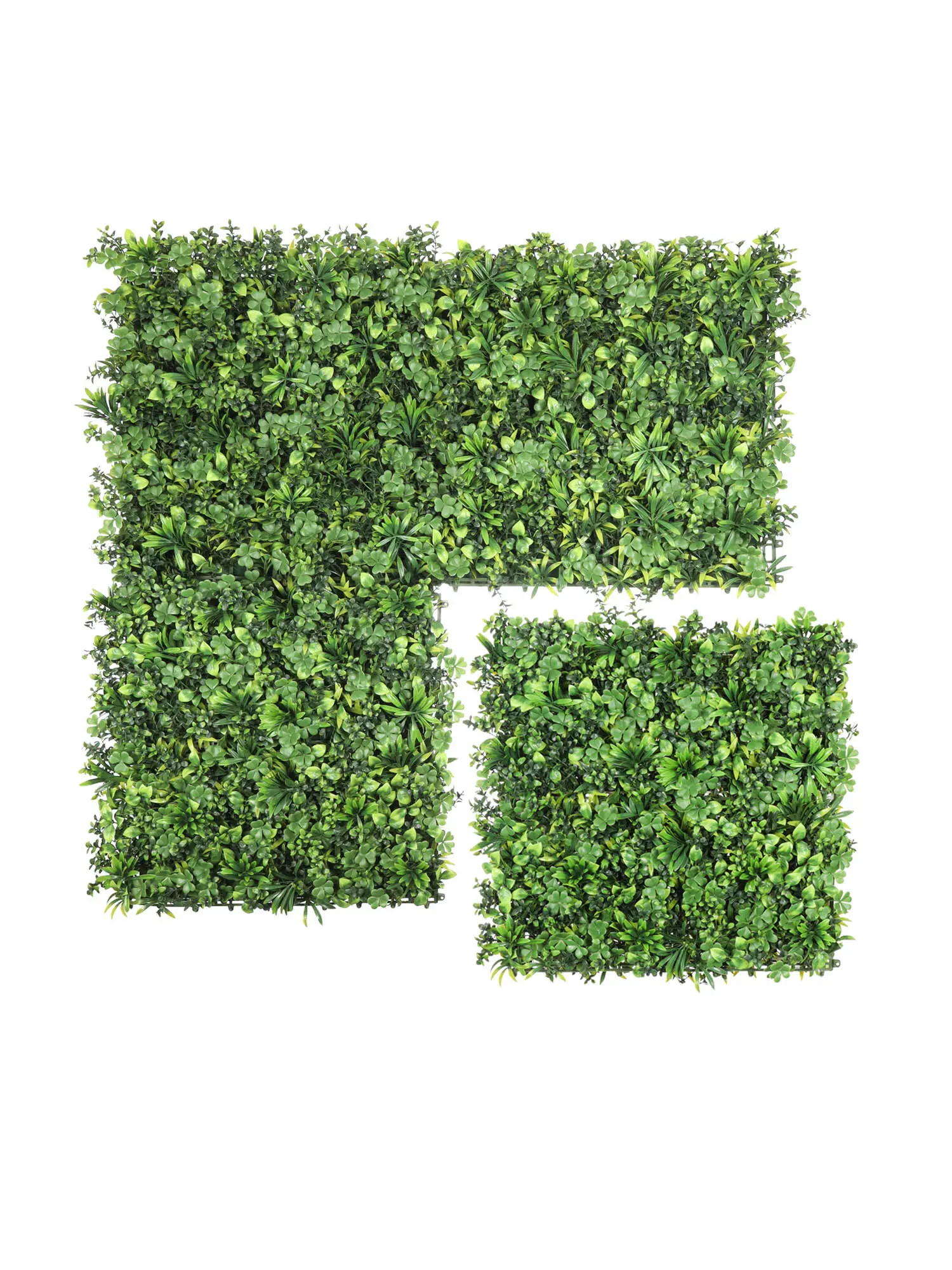 Deze onderhoudsvrije kunsthaag is geschikt voor zowel binnen- als buitengebruik dankzij de hoogwaardige UV-bestendige materialen die verkleuring door zonlicht voorkomen. Door de gelijkmatige verdeling van de kunstplanten ontstaat een kalme en evenwichtige groene wand die rust brengt in elke omgeving. Of je nu een sfeervolle groene wanddecoratie zoekt of een natuurlijke blikvanger zonder onderhoud, deze kunstvetplanten wand is een stijlvolle en duurzame keuze.