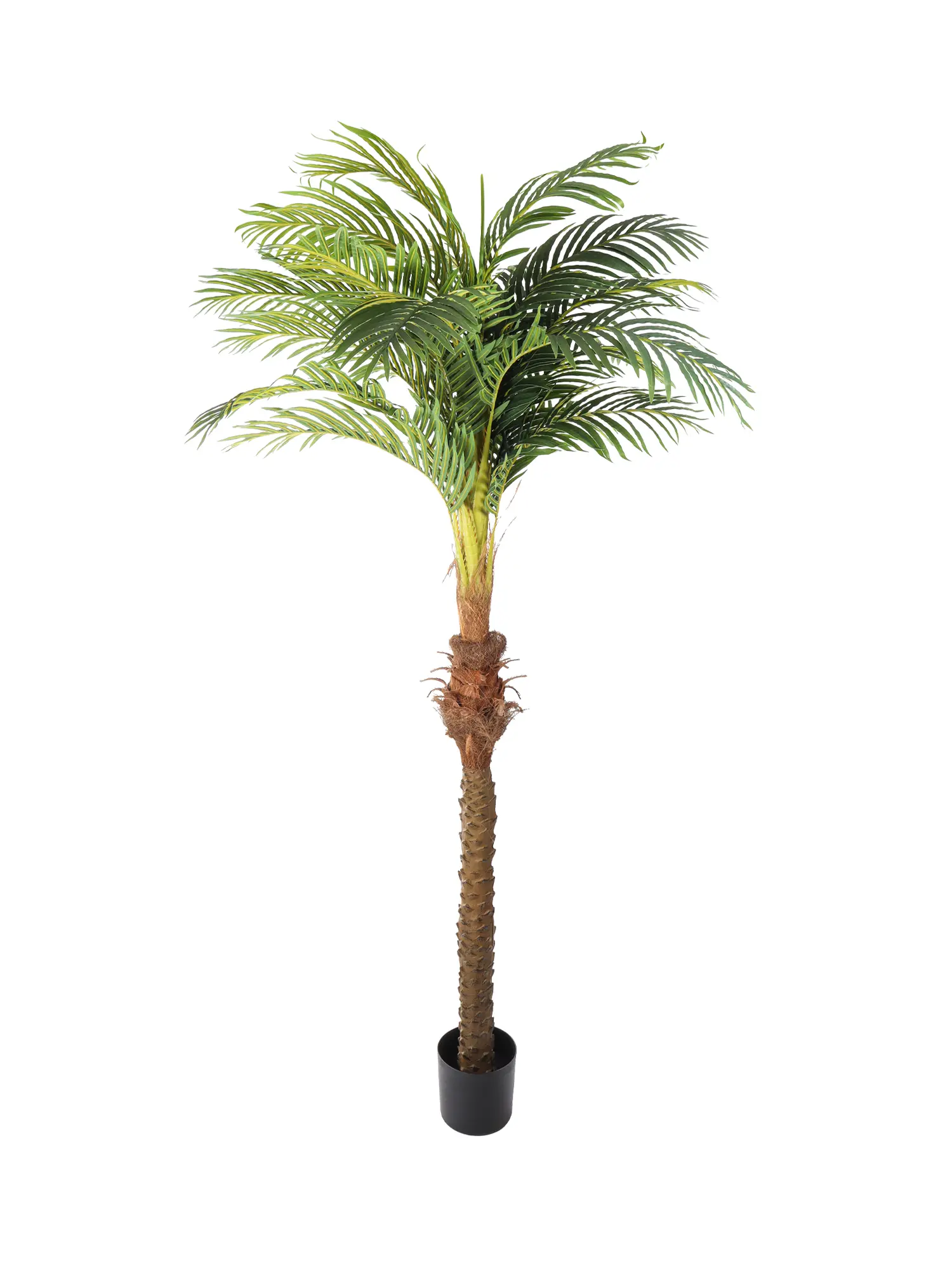 Zo is de palmboom voorzien van een dikke stam met een fraai en levensecht gekarteld oppervlak.