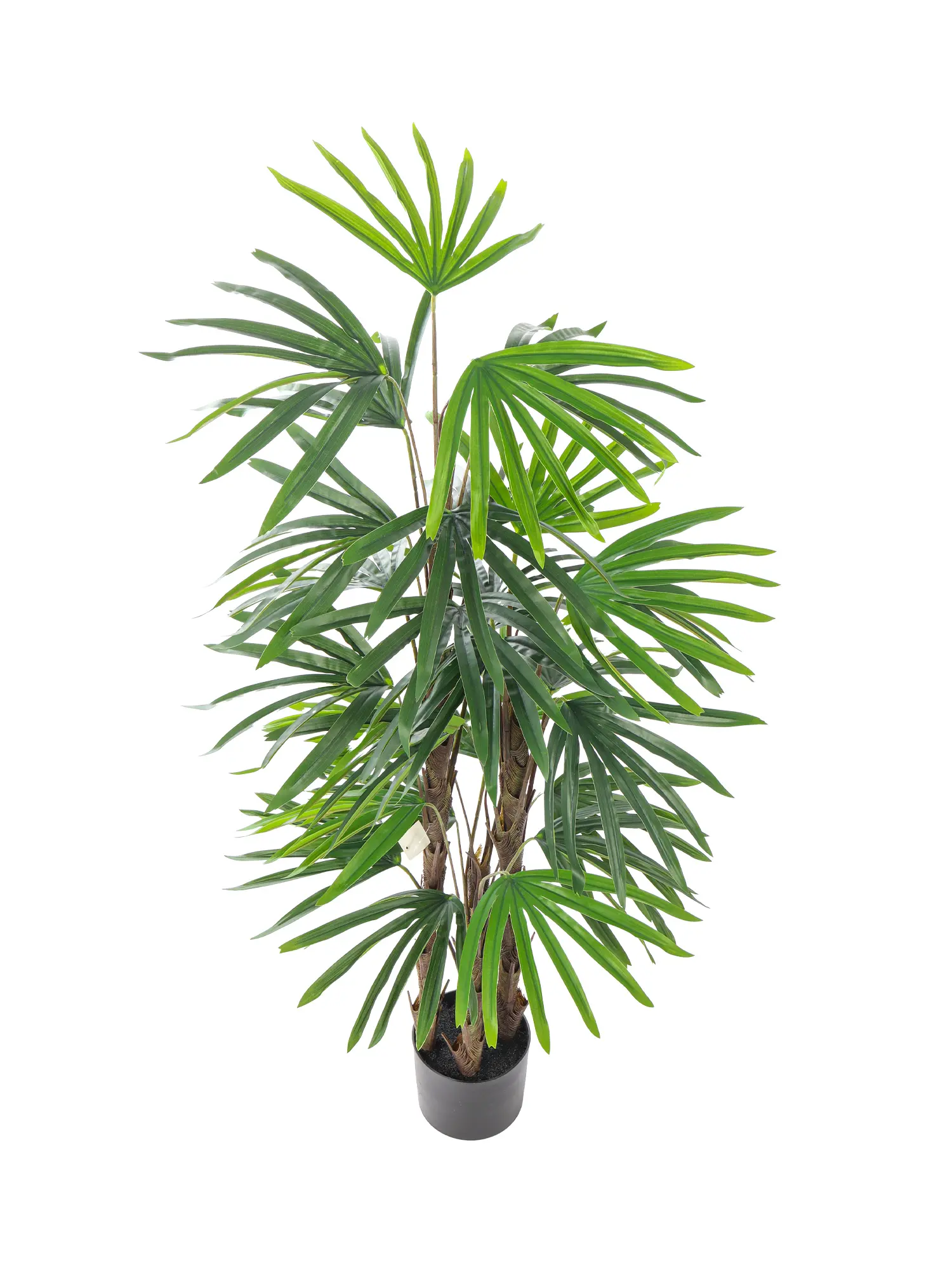 De Kunstpalm Raphis 110cm is een prachtige, compacte kunstpalm die perfect is voor diverse interieurs en professionele toepassingen. Dankzij de hoogwaardige materialen en de natuurgetrouwe afwerking straalt deze kunstplant een luxe en realistische uitstraling uit. Met vier stevige stammen en een rijke hoeveelheid handvormige palmbladeren, brengt deze kunstpalm direct een tropische sfeer in elke ruimte.