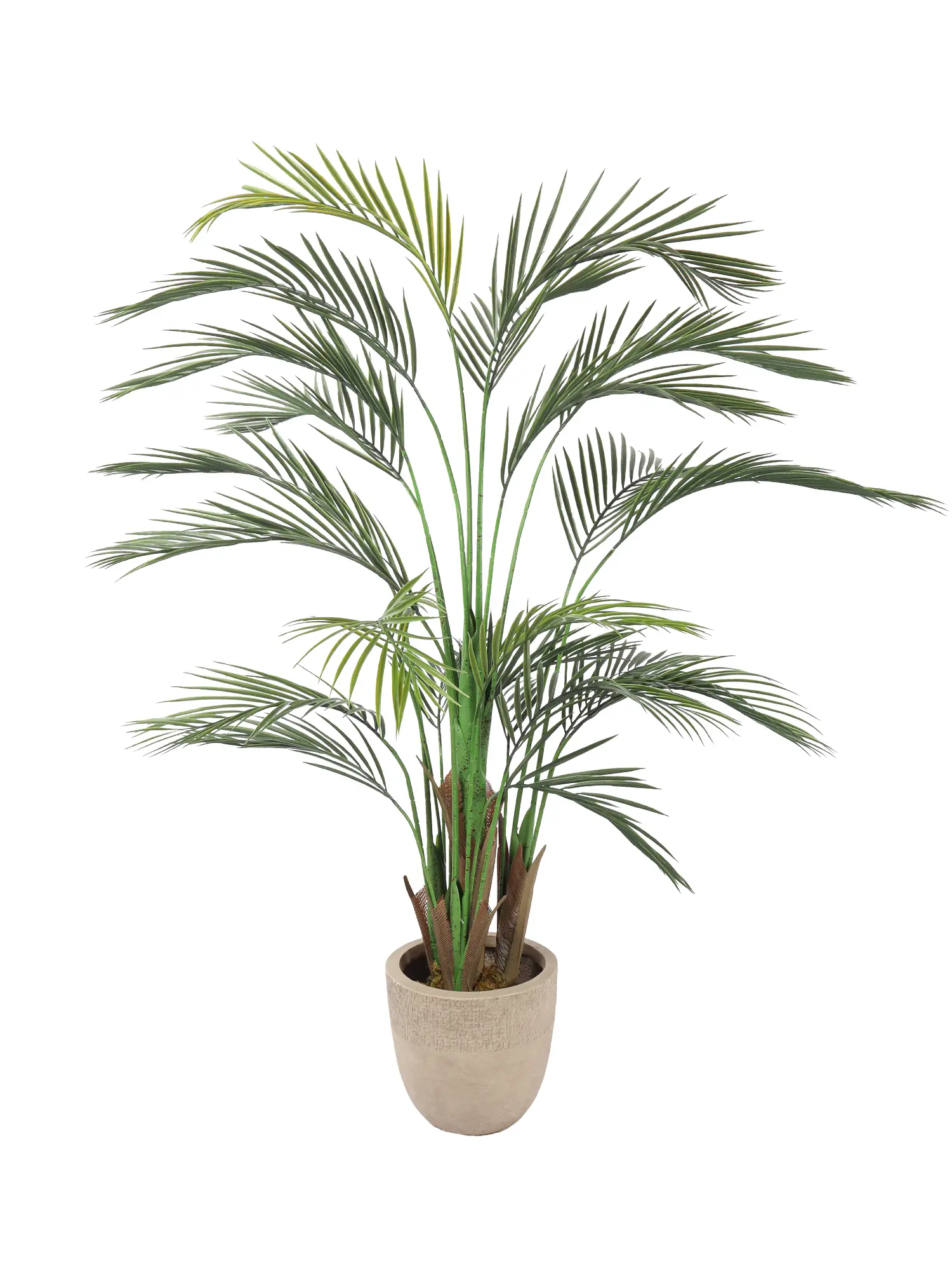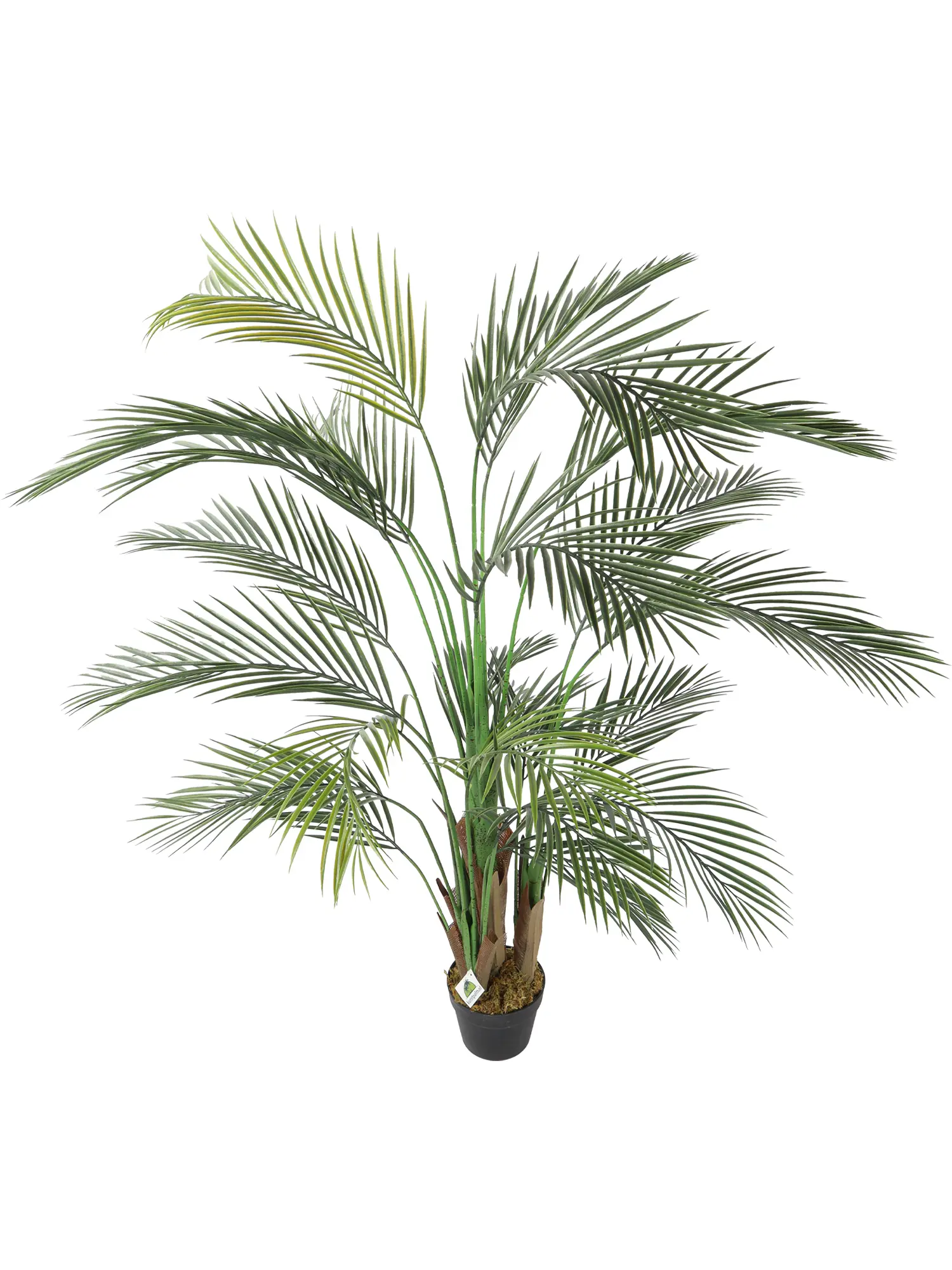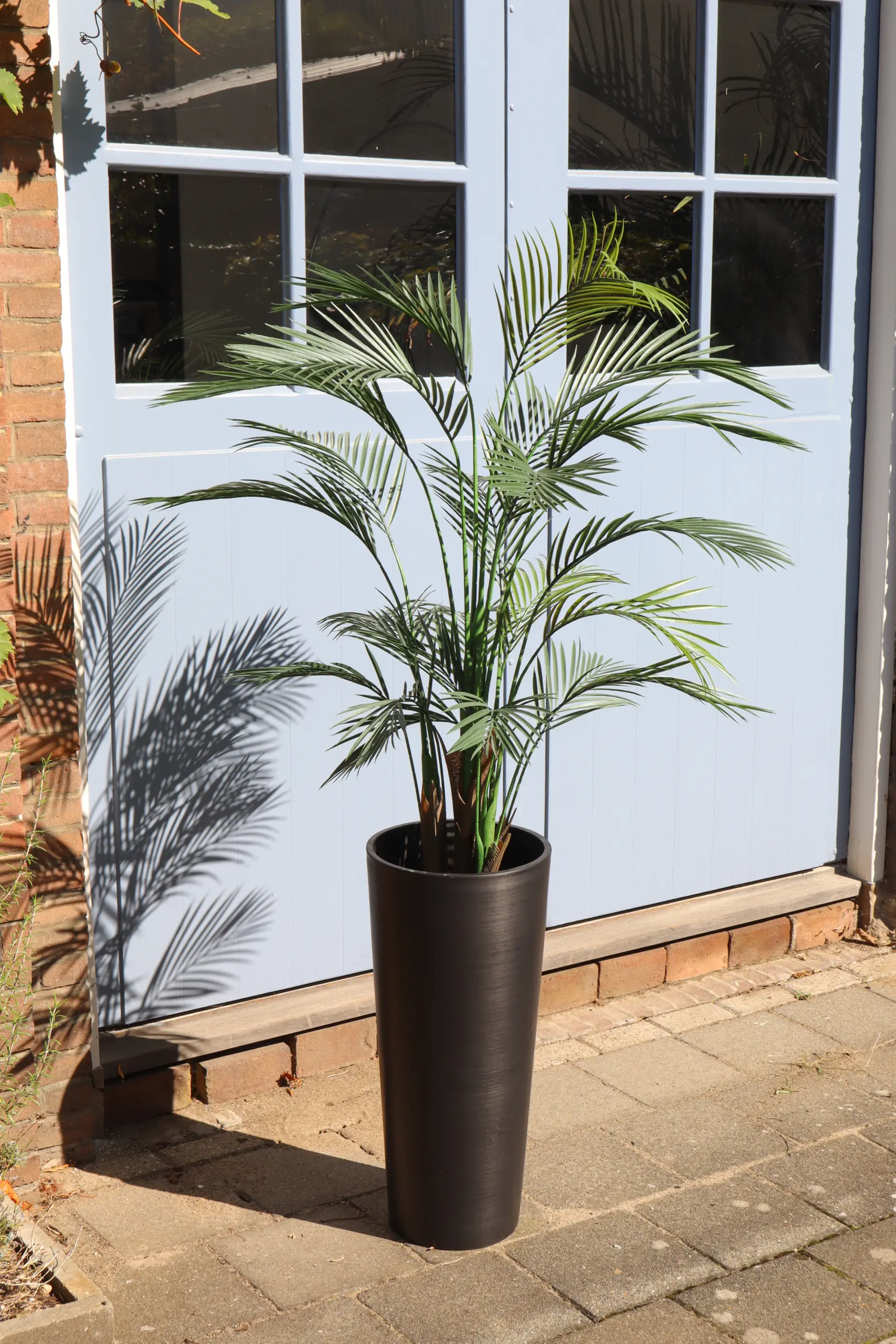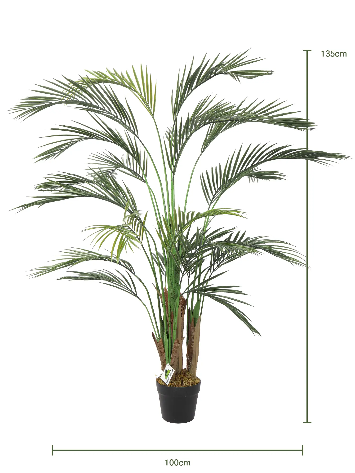 Op zoek naar een sterke neppalm voor buiten? Deze Kunstpalm UV 135cm is een onderhoudsvrije oplossing voor buitengebruik. Met hoogwaardige UV-bescherming tegen verkleuring en een stevige constructie die bestand is tegen uiteenlopende weersinvloeden. De Kunstpalm Voor Buiten Trinidad 135cm is behalve heel vol en stevig ook nog een natuurgetrouwe Areca Kunstpalmboom.