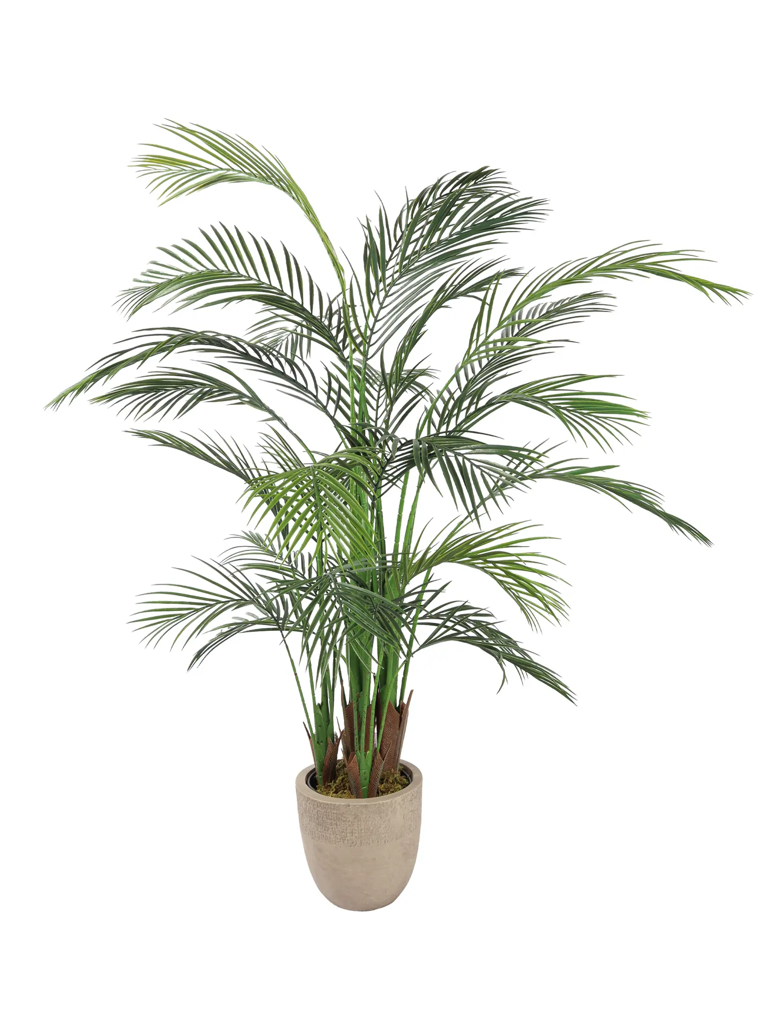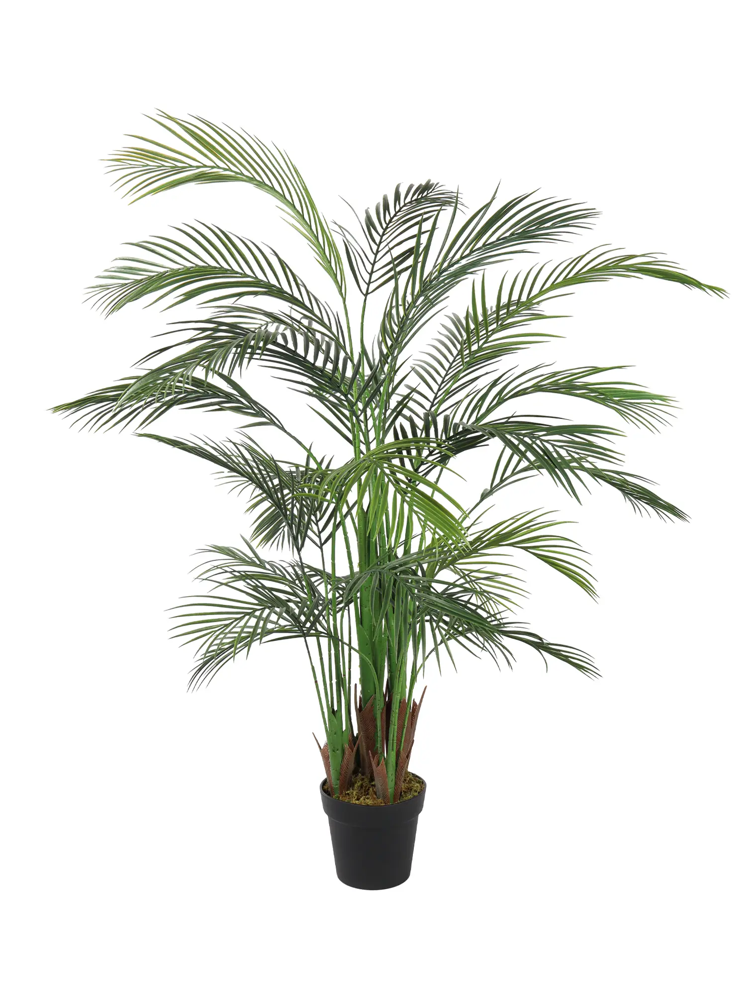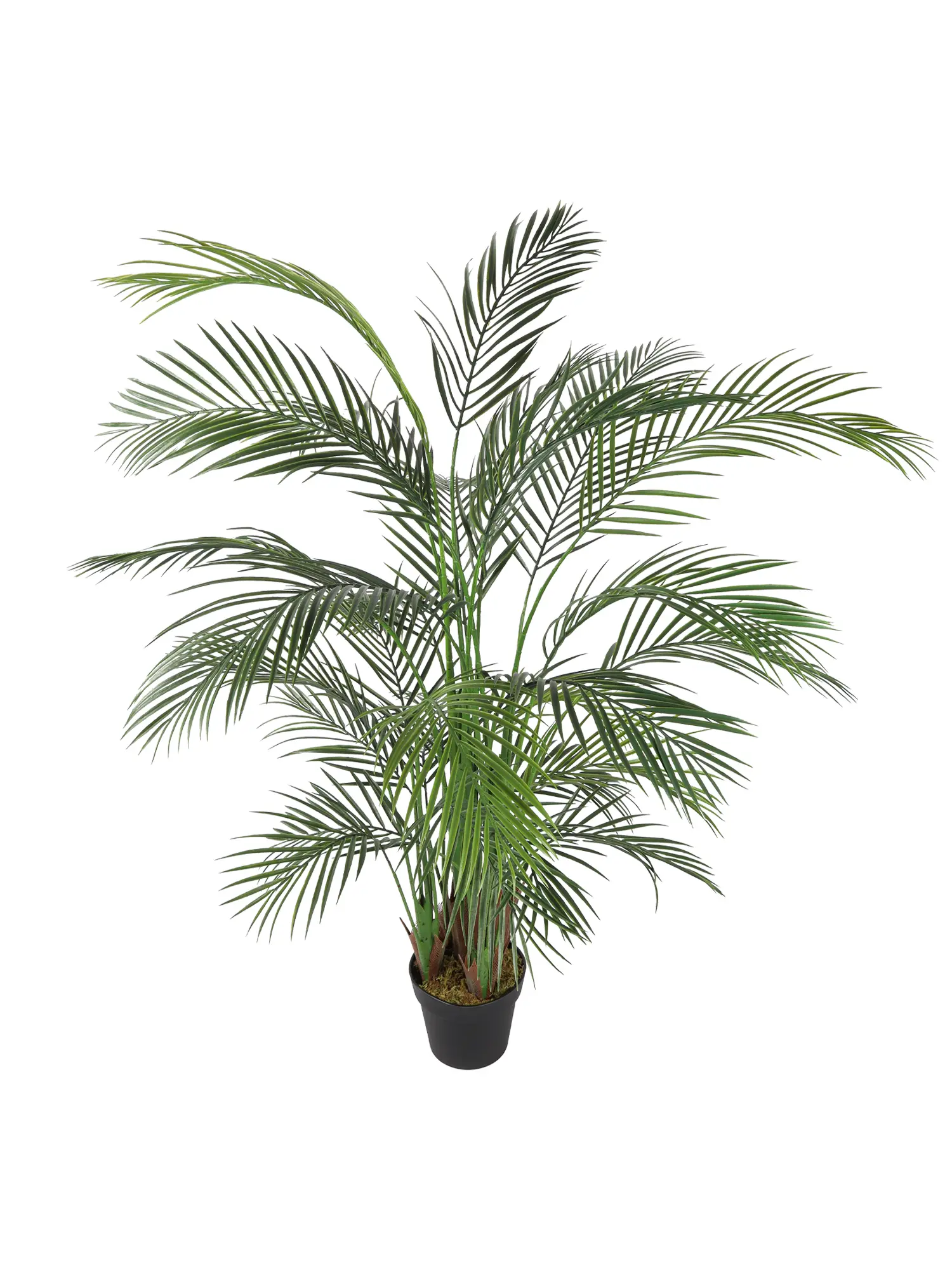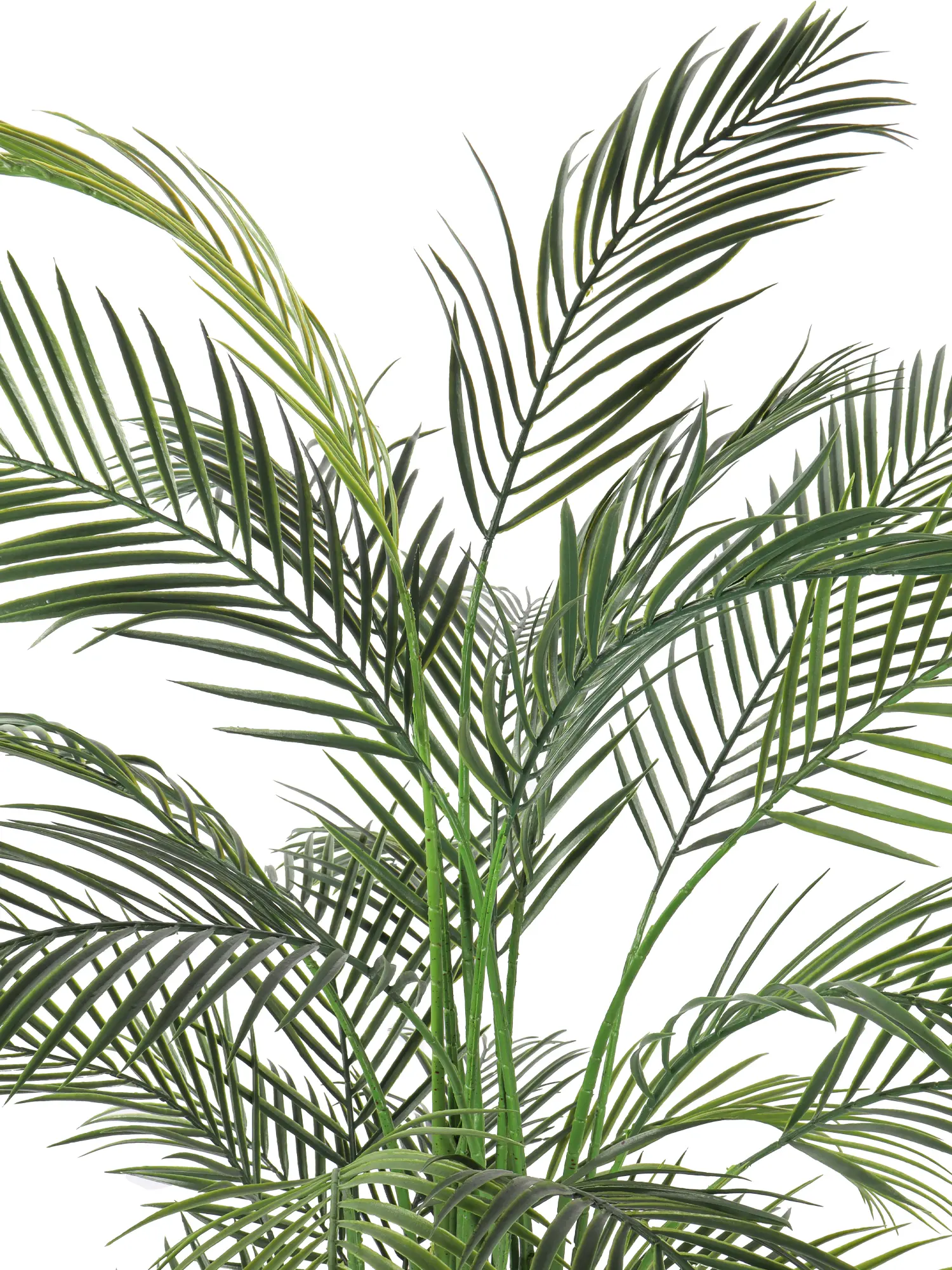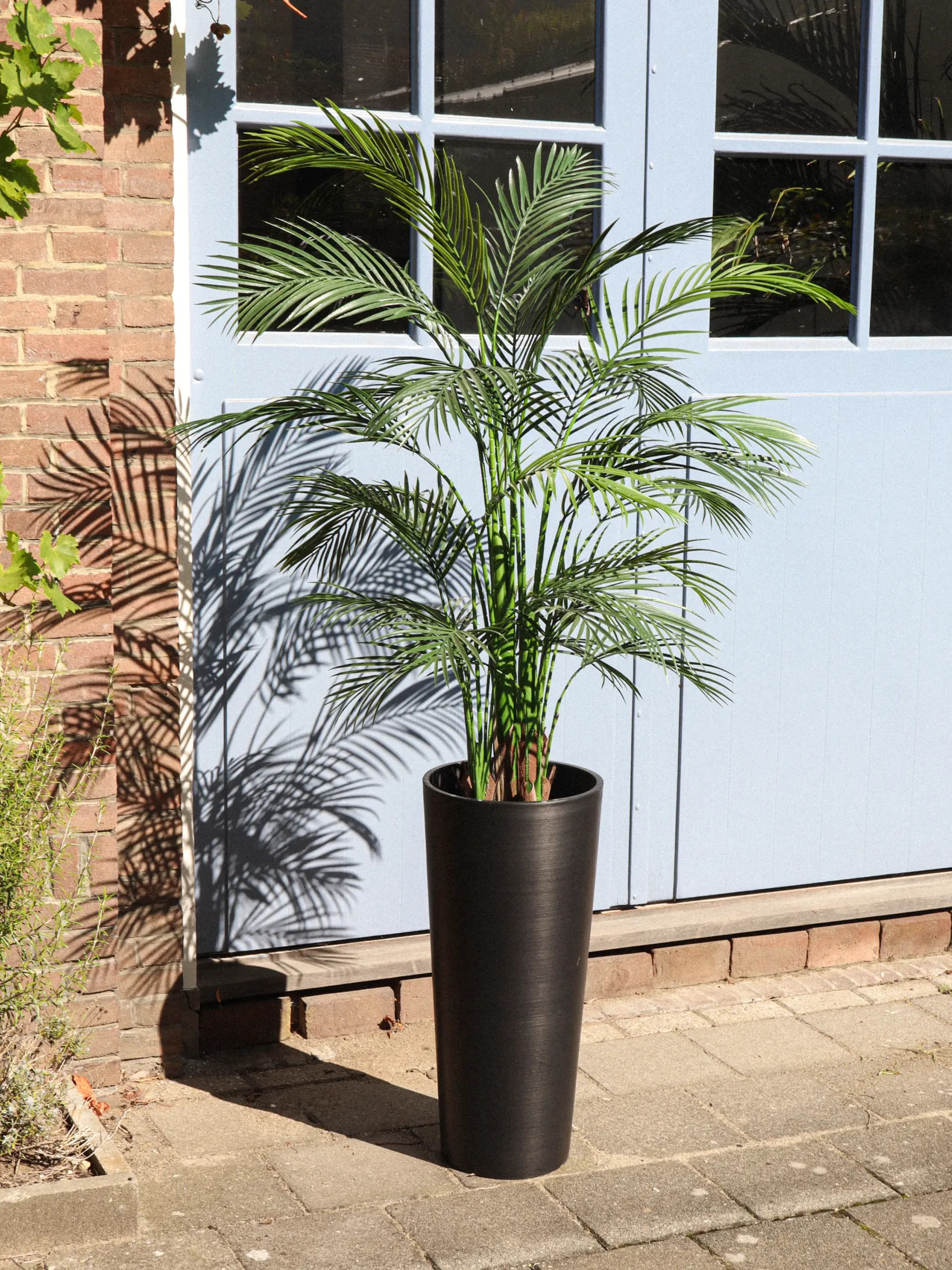 De Kunstpalm Voor Buiten Trinidad 150cm is een stevige, hoogwaardige kunst Arecapalm speciaal ontworpen voor buitengebruik. Dankzij de geïntegreerde UV-filter is deze UV-bestendige kunstpalm optimaal beschermd tegen verkleuring door zonlicht. Zo blijft je kunstplant jarenlang mooi, zelfs op een zonnig terras of balkon.