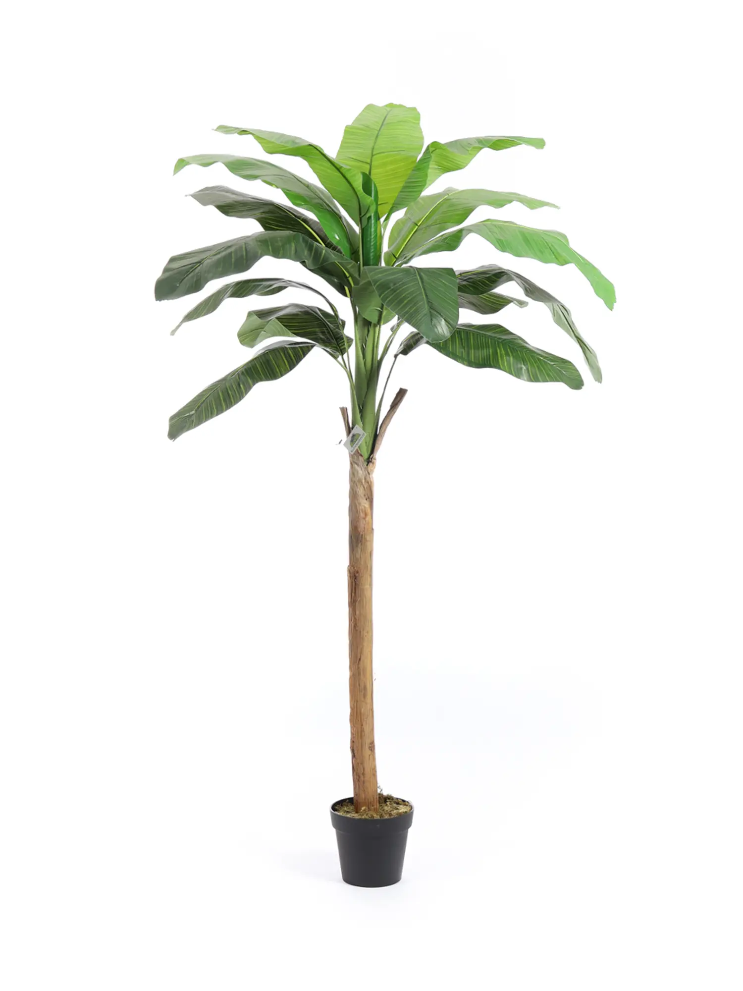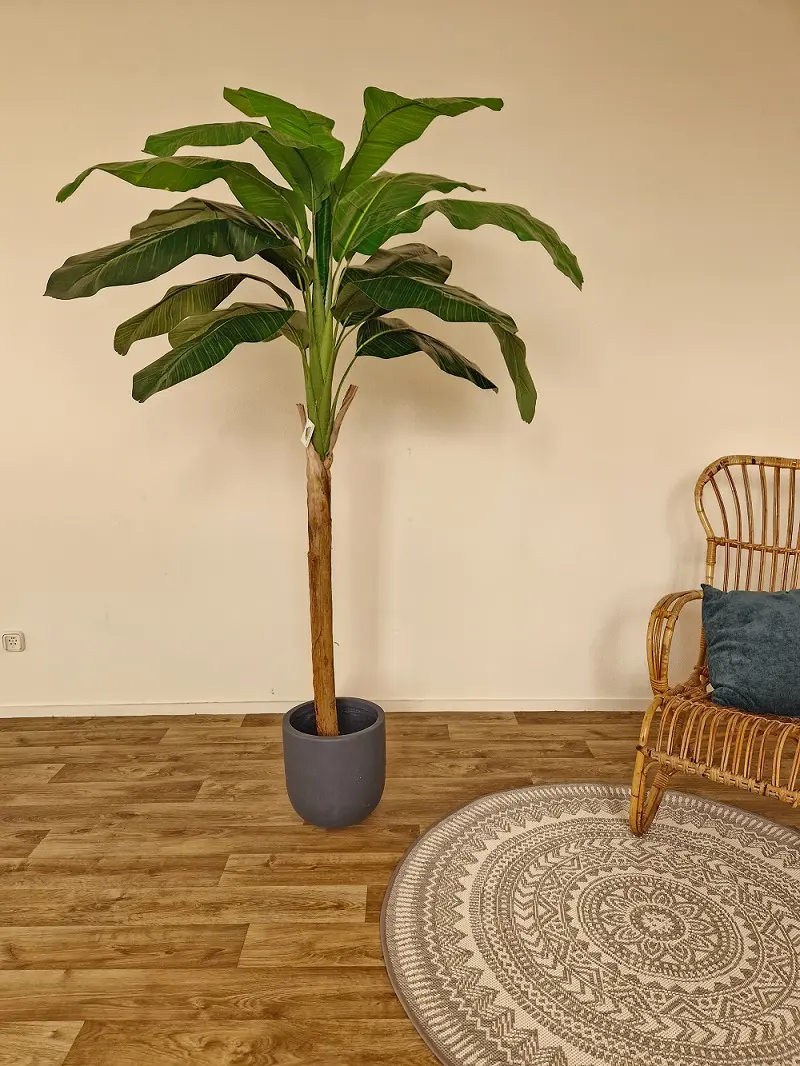 De kunstboom met banaanblad is stevig en voorzien van een mooie volle en brede kruin.