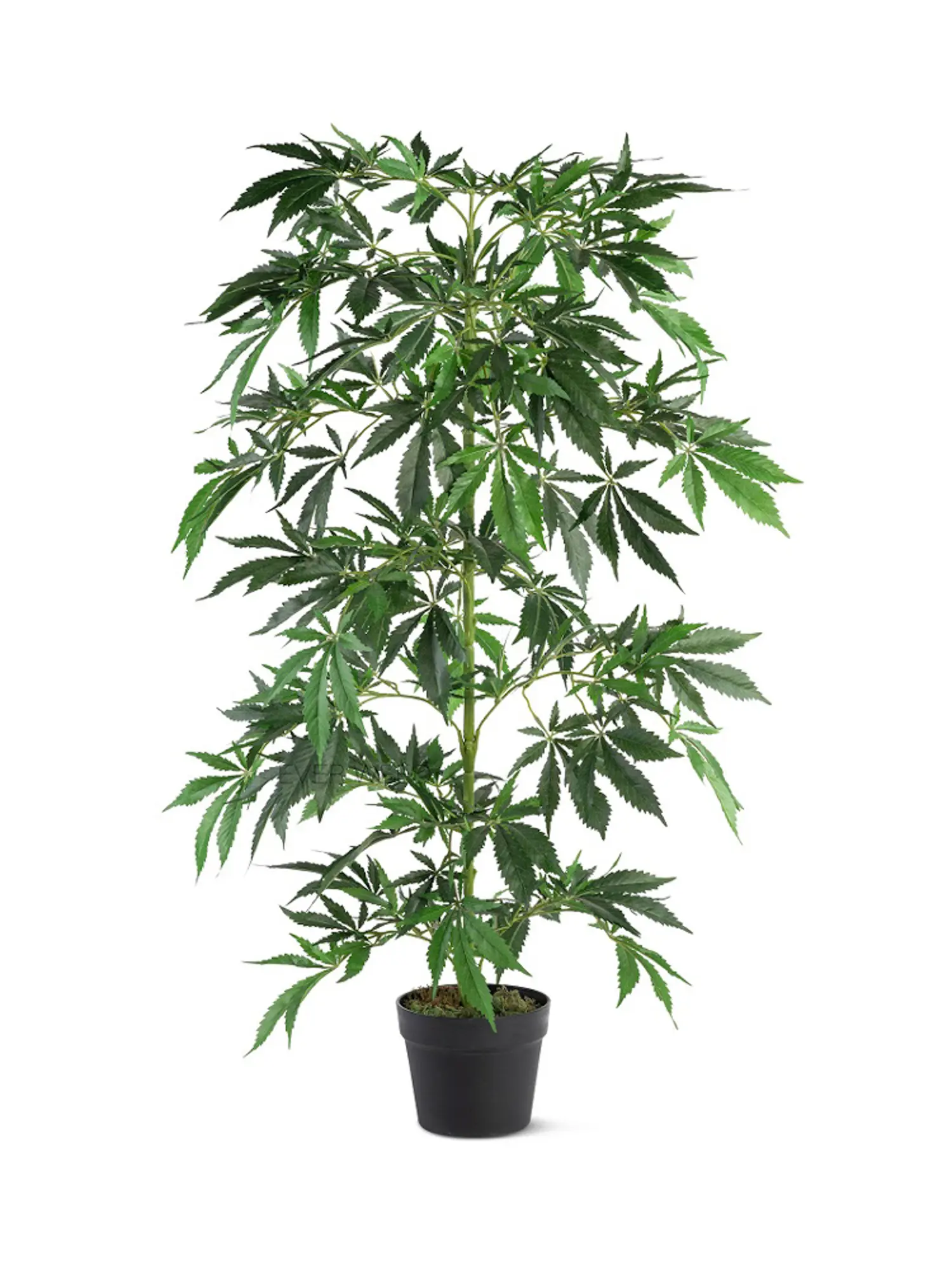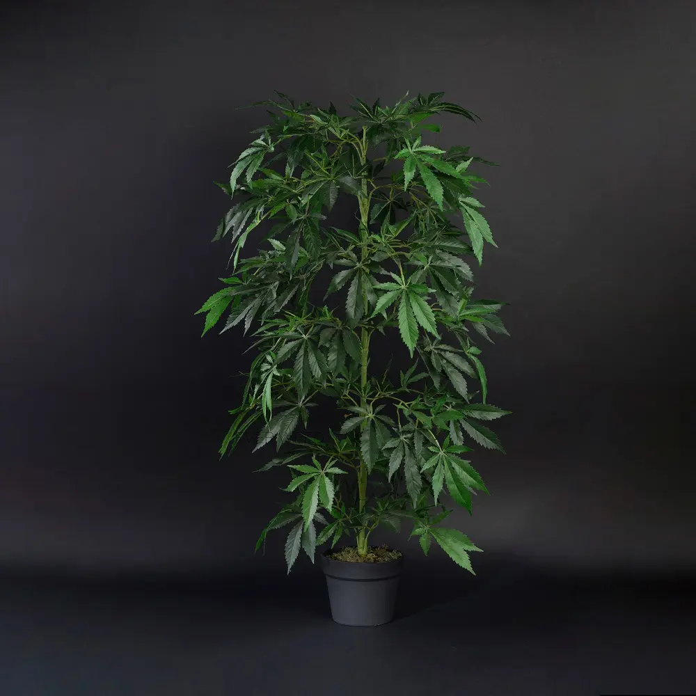 Met een hoogte van 110cm springt deze grote decoratieve cannabisplant goed in het oog.