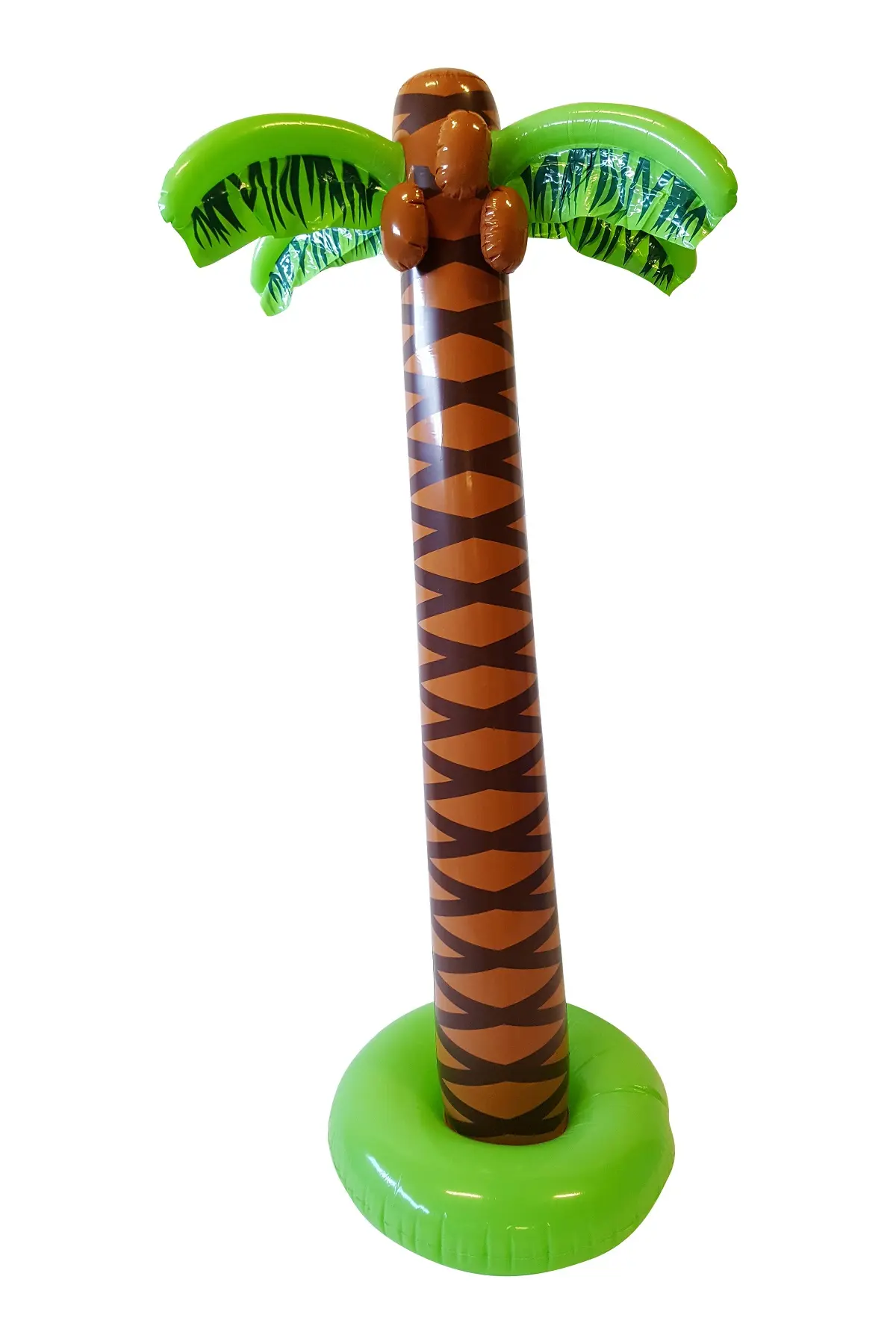 Verder wijst deze Opblaasbare Palmboom XL 175cm zichzelf in gebruik. Een keer flink blazen en je hebt een grote vrolijke boom. De boom is zelfs voorzien van een drietal opgeblazen kokosnoten. Verder een vijftal vrolijke groene bladeren. Daarbij de dikke bruine stam en de palmboom is compleet.