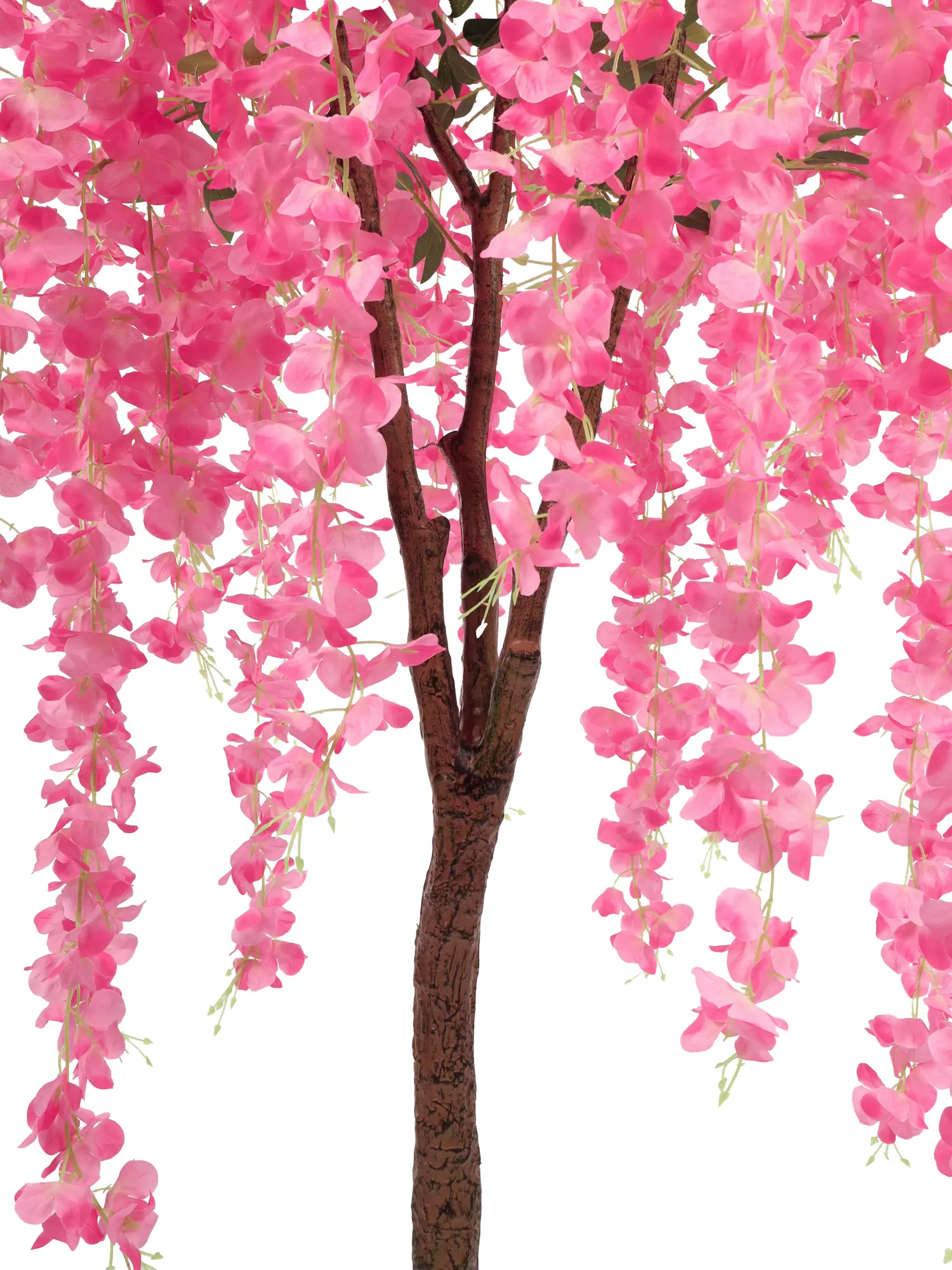 Maar ook in winkels, étalages en showrooms komt deze fraaie roze Wisteria kunstboom goed tot haar recht.