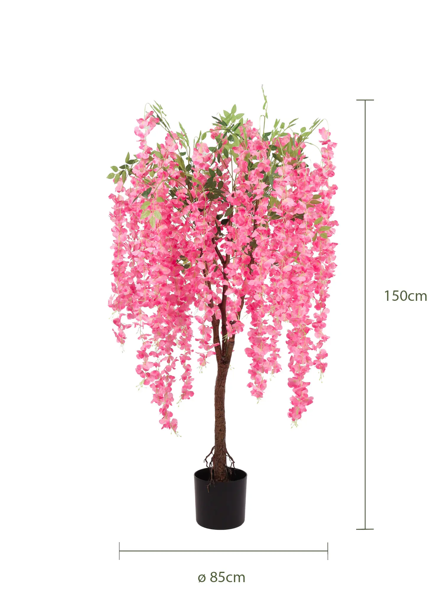 Deze Roze Kunstwisteria Florance 150cm is een prachtige opvallende kunstbloemboom.