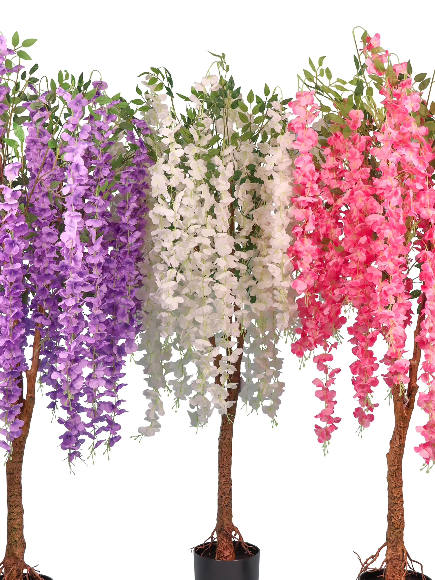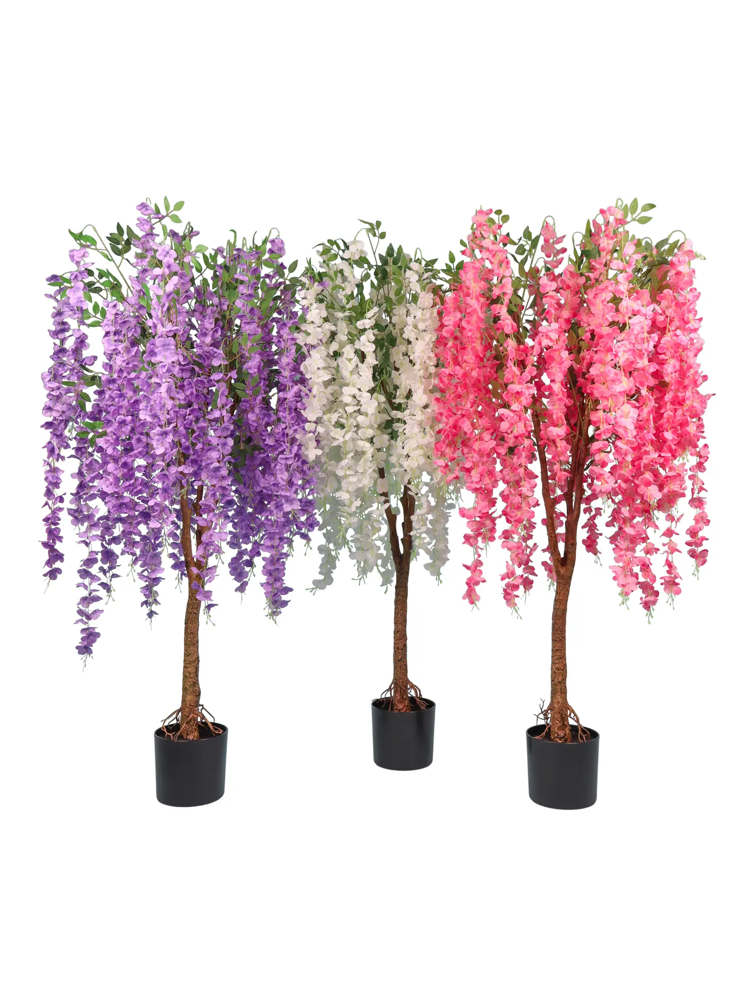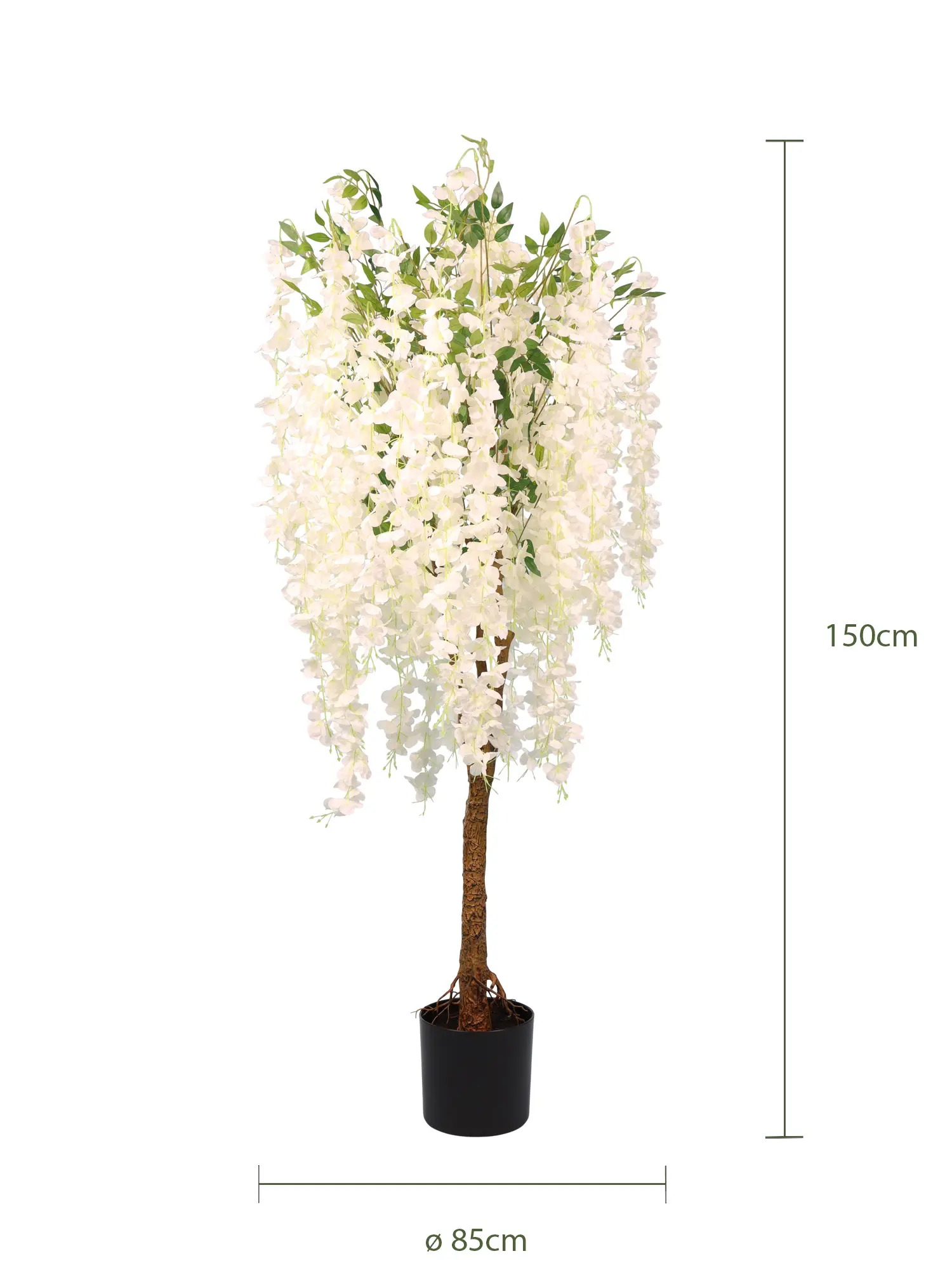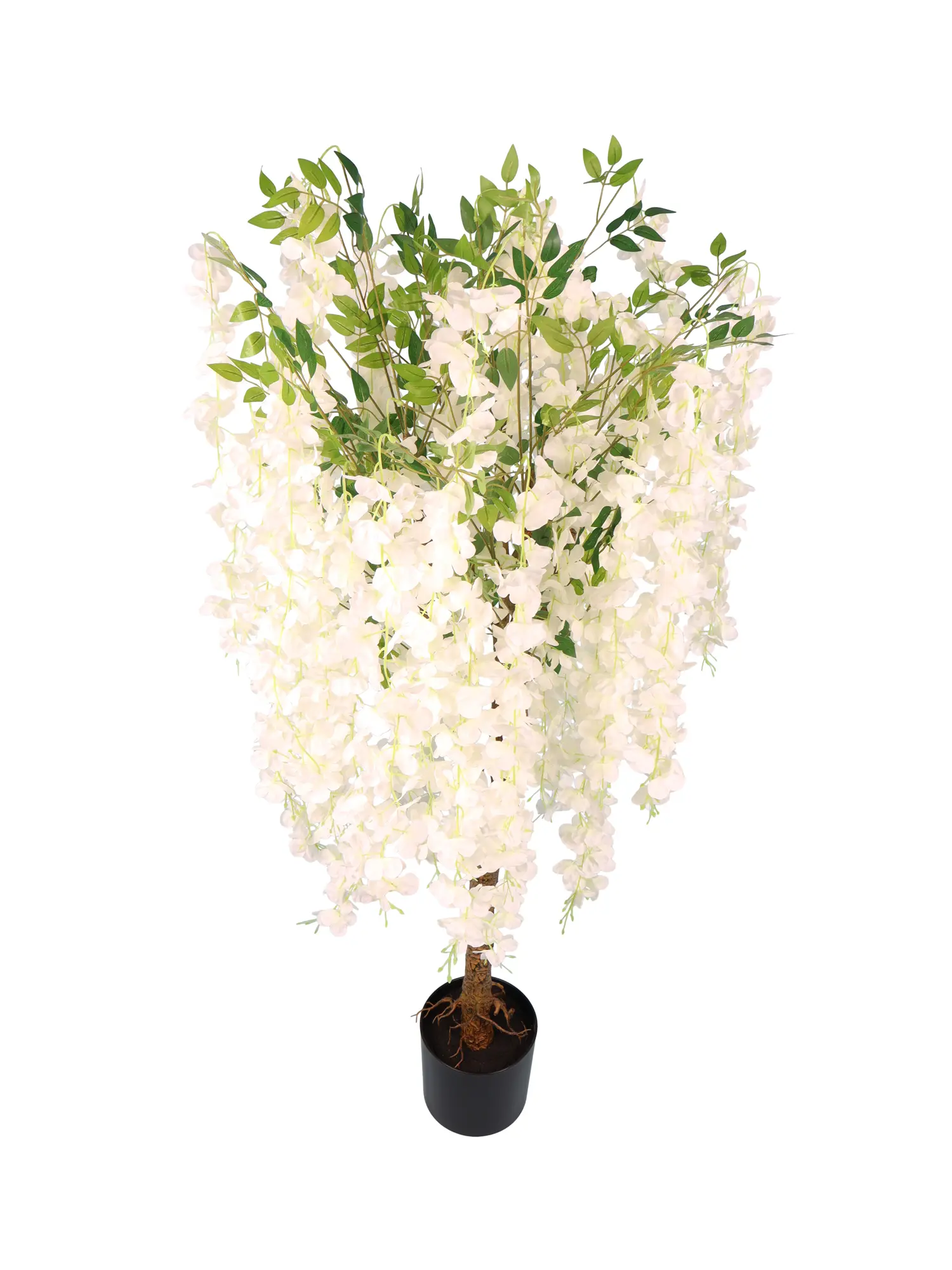 Deze Witte Kunstwisteria Florence 150cm is een prachtige opvallende kunstwistera bloemboom.